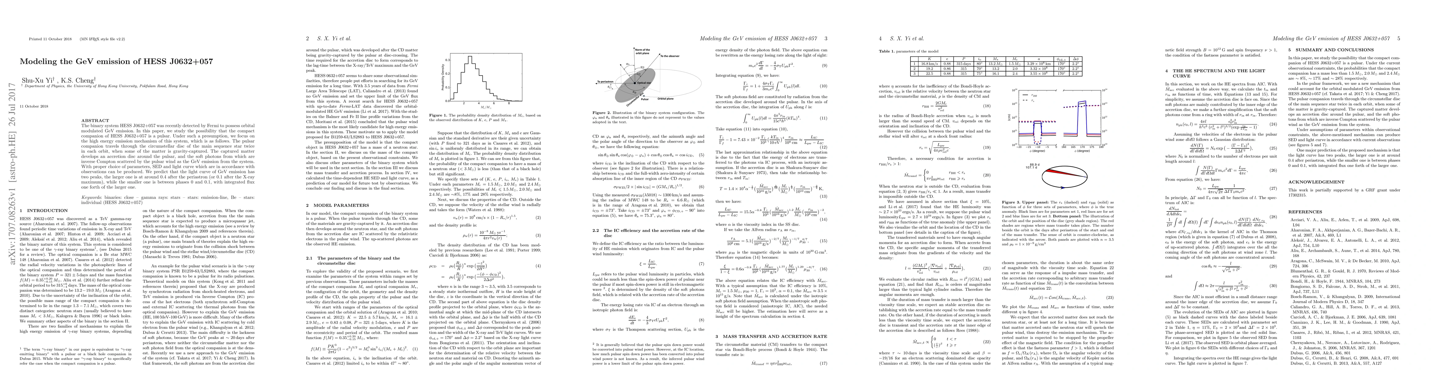 This paper investigates the GeV emission from the binary system HESS J0632+057, proposing a pulsar companion model. It suggests that the pulsar captures matter from the companion star, leading to GeV emission via inverse Compton scattering of soft photons from an accretion disc.