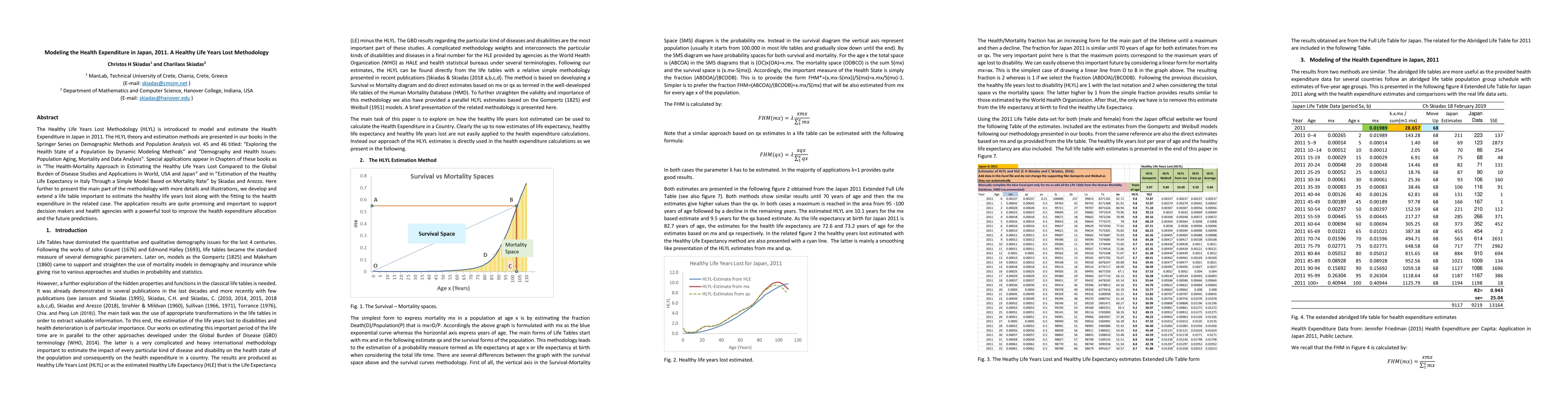 This research paper introduces the Healthy Life Years Lost Methodology to model and estimate health expenditure in Japan in 2011. It presents a life table that estimates healthy life years lost and provides promising results for improving health expenditure allocation and future predictions.