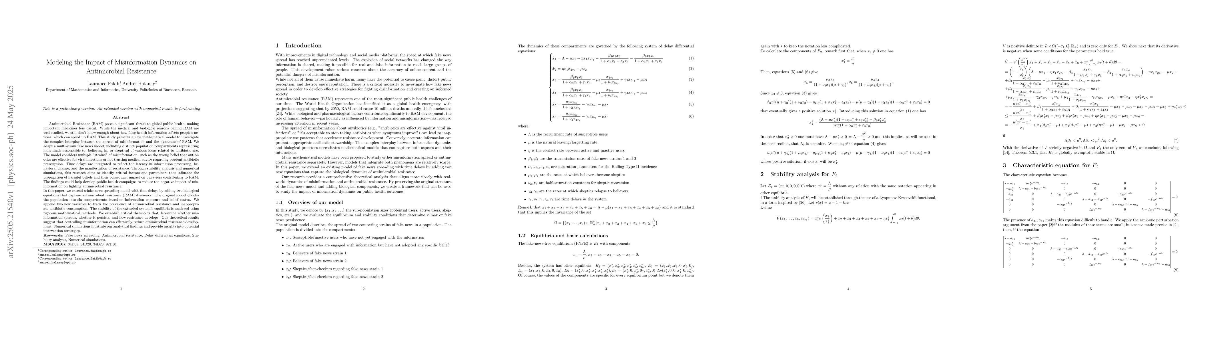 A new model investigates how misinformation affects antimicrobial resistance by simulating the spread of false health information through multiple population compartments. The study aims to identify critical factors influencing the propagation of harmful beliefs and behaviors contributing to RAM.