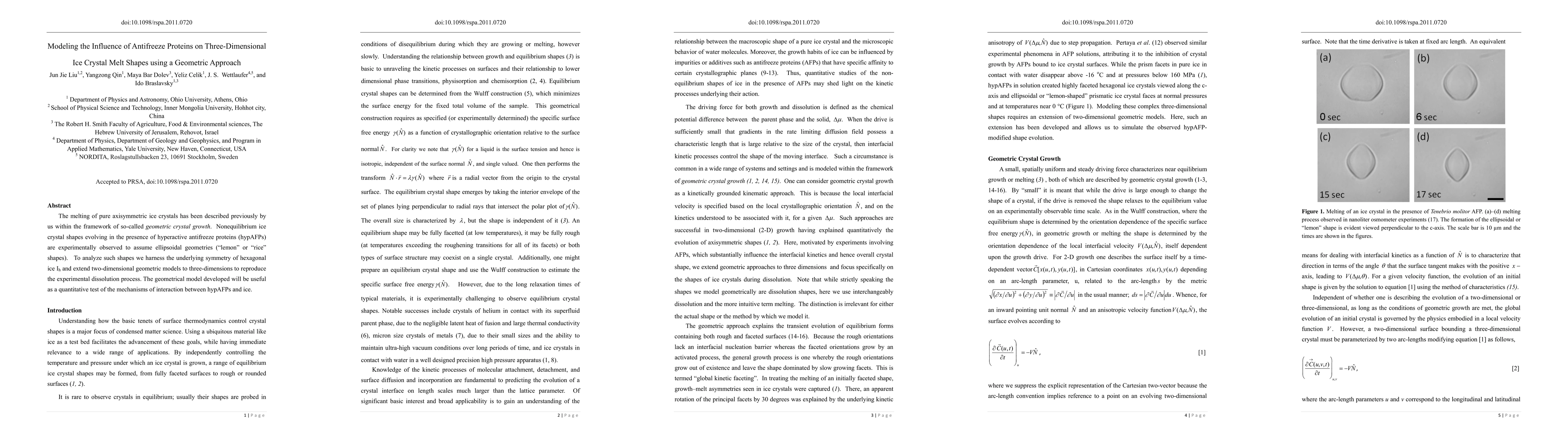 The melting of pure axisymmetric ice crystals has been described previously by us within the framework of so-called geometric crystal growth. Nonequilibrium ice crystal shapes evolving in the presence of hyperactive antifreeze proteins (hypAFPs) are experimentally observed to assume ellipsoidal geometries ("lemon" or "rice" shapes). To analyze such shapes we harness the underlying symmetry of hexagonal ice Ih and extend two-dimensional geometric models to three-dimensions to reproduce the experimental dissolution process. The geometrical model developed will be useful as a quantitative test of the mechanisms of interaction between hypAFPs and ice.