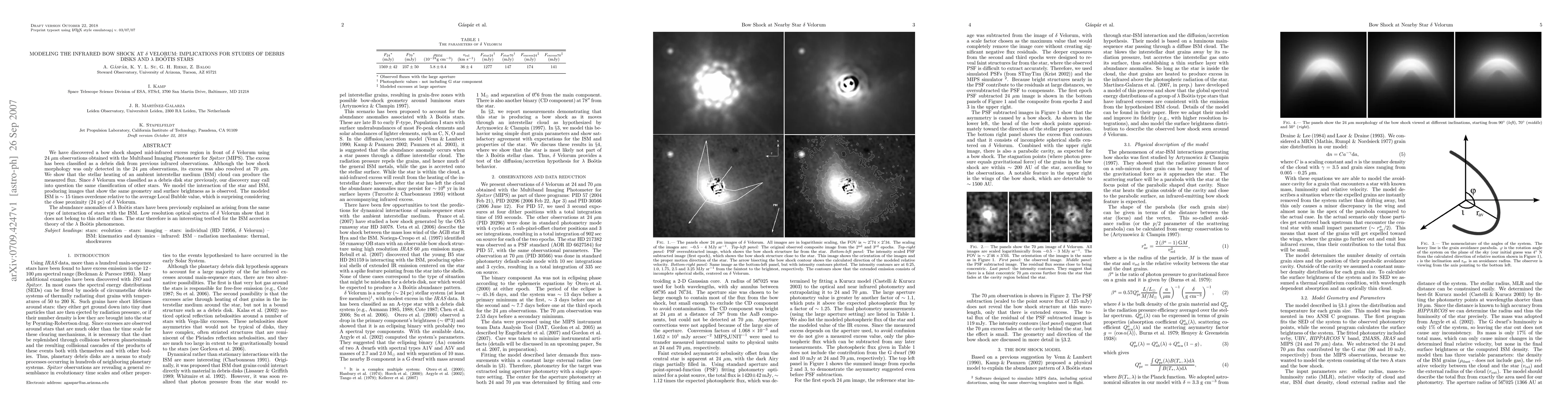 Researchers discovered a bow shock in front of star delta Velorum, which challenges its previous classification as a debris disk star. The model suggests that the star's interaction with an ambient interstellar medium cloud is responsible for the excess flux.