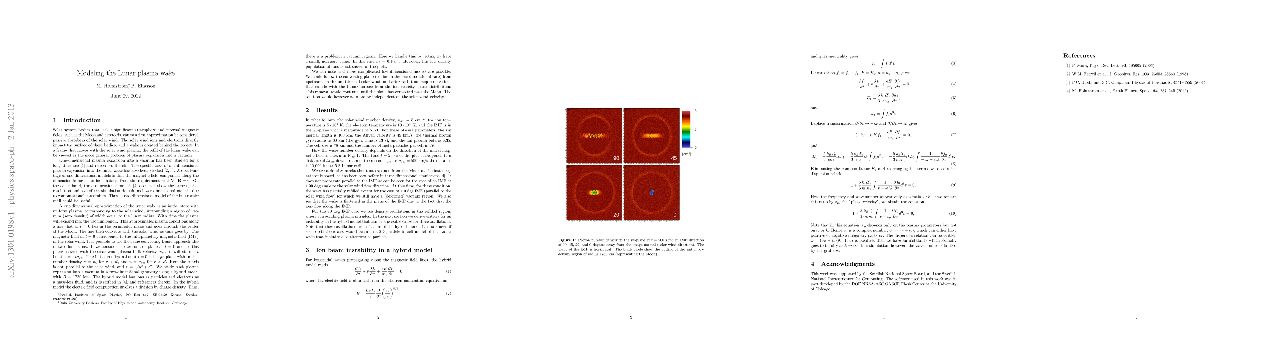 The Moon's lunar plasma wake is studied using a hybrid plasma solver, revealing that it creates ion velocity distributions far from thermal Maxwellian distributions, leading to observed plasma instabilities.
