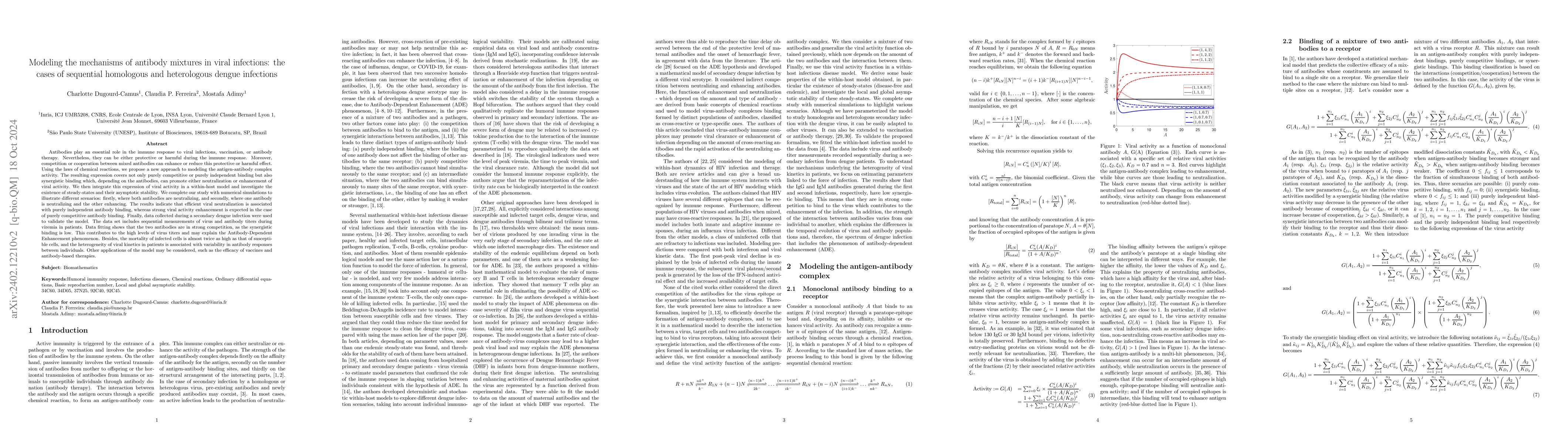This paper proposes a novel mathematical model to study the mechanisms of antibody mixtures in viral infections, particularly dengue. The model accounts for both competitive and cooperative effects of antibodies, predicting outcomes ranging from viral neutralization to enhancement. The study applies this model to sequential dengue infections, demonstrating potential applications in vaccine and therapy efficacy studies.