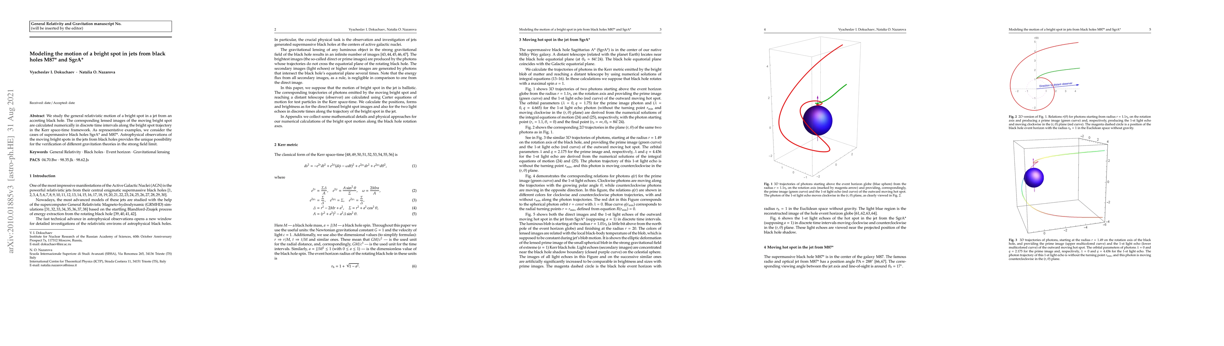 This paper simulates the motion of bright spots in black hole jets to test gravity theories, using numerical calculations for two supermassive black holes: M87* and SgrA*.