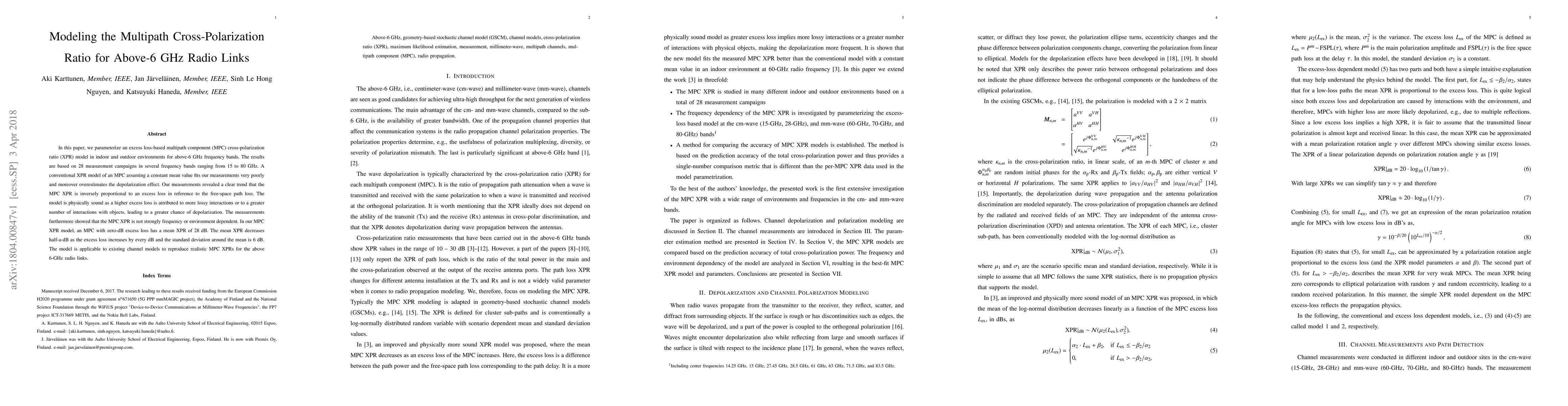 This paper develops a parameterization for the multipath cross-polarization ratio (XPR) model above 6 GHz, showing that MPC XPR is inversely proportional to excess loss, with a mean XPR of 28 dB decreasing by half-a-dB for every dB increase in excess loss. The model is validated through 28 measurement campaigns across various frequency bands.