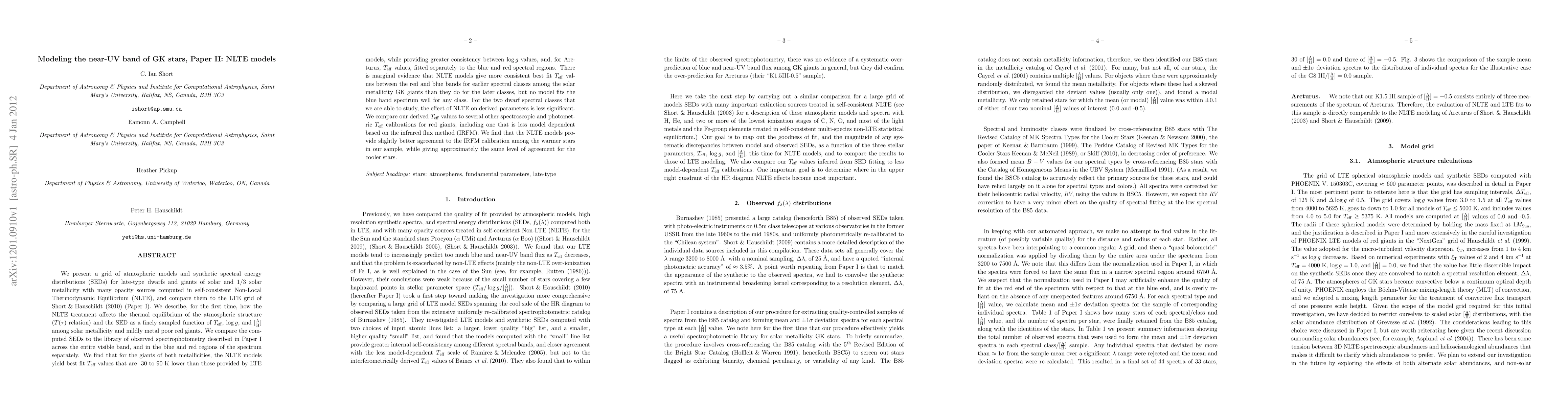 We present a grid of atmospheric models and synthetic spectral energy distributions (SEDs) for late-type dwarfs and giants of solar and 1/3 solar metallicity with many opacity sources computed in self-consistent Non-Local Thermodynamic Equilibrium (NLTE), and compare them to the LTE grid of Short & Hauschildt (2010) (Paper I). We describe, for the first time, how the NLTE treatment affects the thermal equilibrium of the atmospheric structure (T(tau) relation) and the SED as a finely sampled function of Teff, log g, and [A/H] among solar metallicity and mildly metal poor red giants. We compare the computed SEDs to the library of observed spectrophotometry described in Paper I across the entire visible band, and in the blue and red regions of the spectrum separately. We find that for the giants of both metallicities, the NLTE models yield best fit Teff values that are ~30 to 90 K lower than those provided by LTE models, while providing greater consistency between \log g values, and, for Arcturus, Teff values, fitted separately to the blue and red spectral regions. There is marginal evidence that NLTE models give more consistent best fit Teff values between the red and blue bands for earlier spectral classes among the solar metallicity GK giants than they do for the later classes, but no model fits the blue band spectrum well for any class. For the two dwarf spectral classes that we are able to study, the effect of NLTE on derived parameters is less significant.