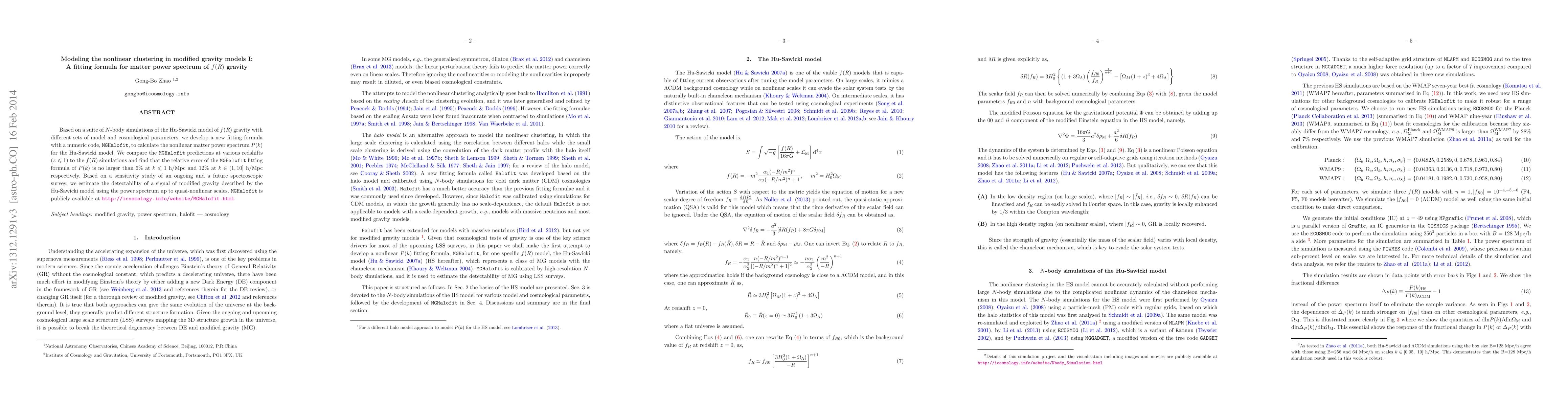 matter power spectrum P(k) for the Hu-Sawicki model. We compare the MGHalofit