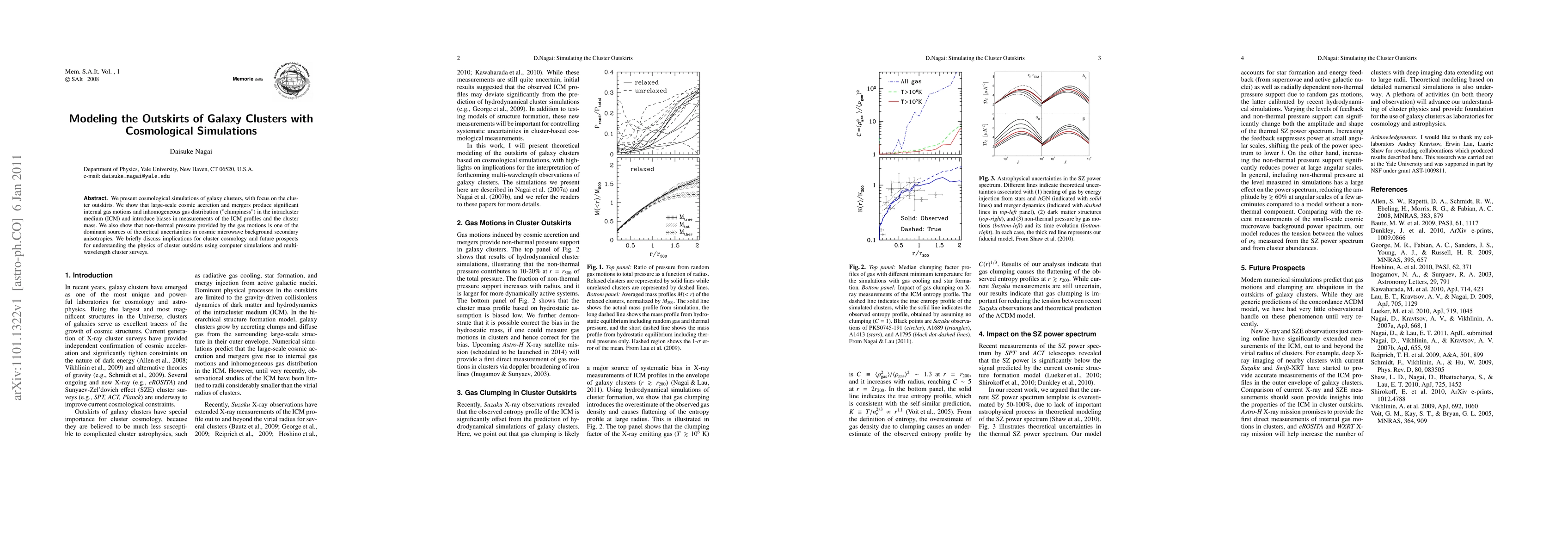 We present cosmological simulations of galaxy clusters, with focus on the cluster outskirts. We show that large-scale cosmic accretion and mergers produce significant internal gas motions and inhomogeneous gas distribution ("clumpiness") in the intracluster medium (ICM) and introduce biases in measurements of the ICM profiles and the cluster mass. We also show that non-thermal pressure provided by the gas motions is one of the dominant sources of theoretical uncertainties in cosmic microwave background secondary anisotropies. We briefly discuss implications for cluster cosmology and future prospects for understanding the physics of cluster outskirts using computer simulations and multi-wavelength cluster surveys.