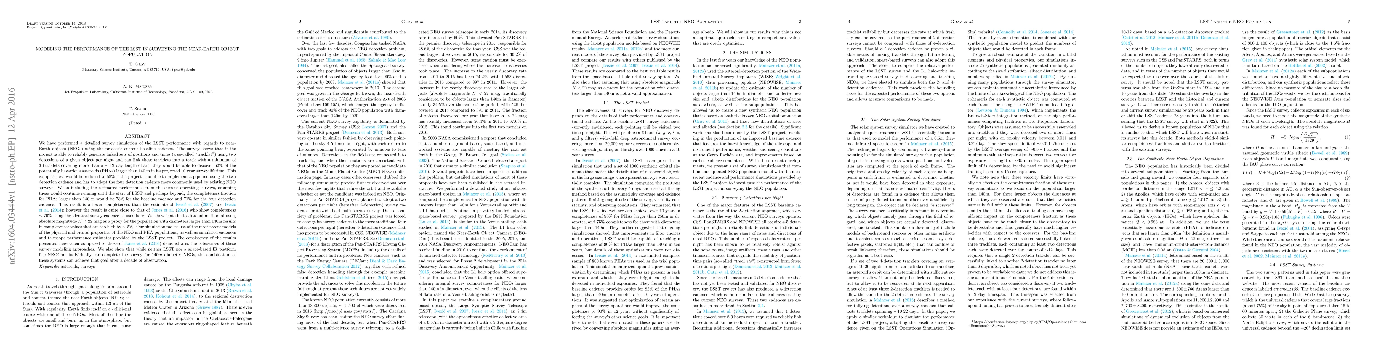 This study simulates the Large Synoptic Survey Telescope's (LSST) capability to survey near-Earth objects (NEOs) and discovers that LSST could find 62% of hazardous asteroids over 140m in size using a two-detection per night cadence. The completeness drops to 58% with a four-detection cadence, but combined with current surveys, it reaches 73%. The study also finds that traditional magnitude-based estimates overstate the population by ~5%.