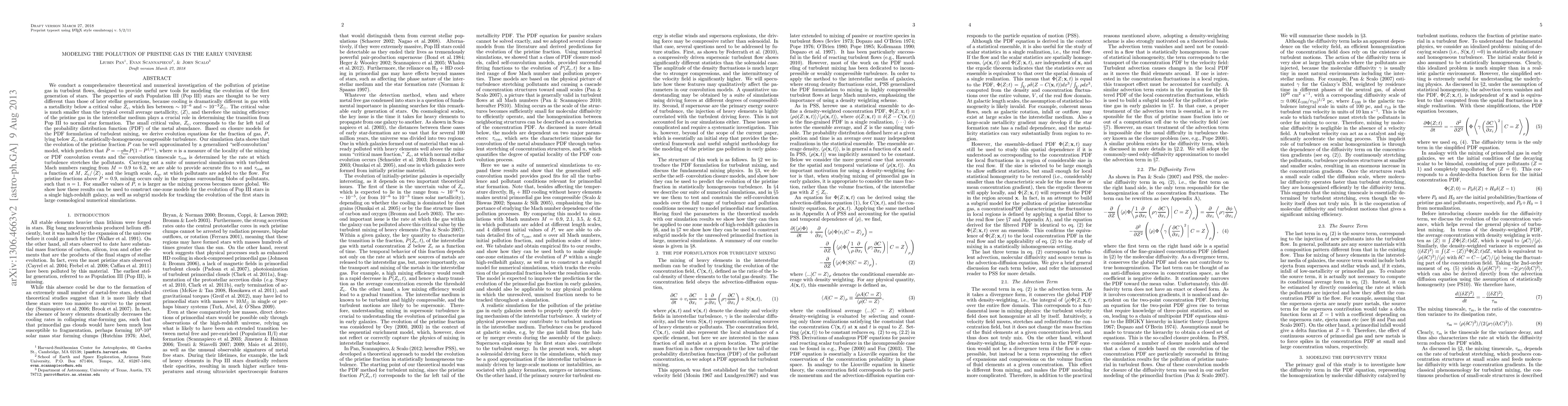 pollution of pristine gas in turbulent flows, designed to provide new tools for