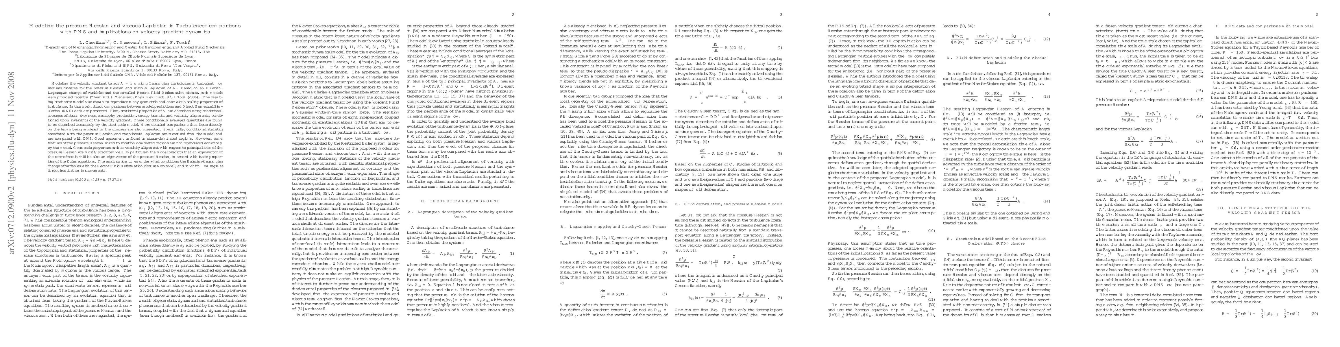 This paper proposes a stochastic model for the velocity gradient tensor in turbulent flows, based on the pressure Hessian and viscous Laplacian closures. The model accurately reproduces many statistical properties of turbulence when compared to Direct Numerical Simulation (DNS) data, particularly in strain-dominated regions, but requires improvements for better predictions in rotation-dominated regions.