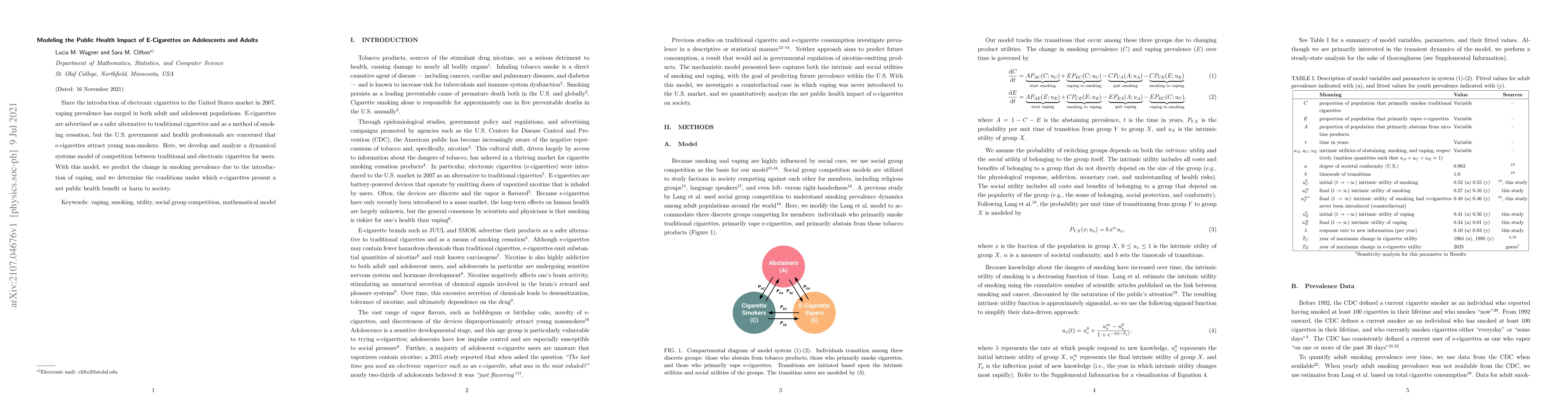 This paper develops a dynamical systems model to analyze the competition between traditional and electronic cigarettes, predicting changes in smoking prevalence due to vaping and determining the conditions for e-cigarettes to provide a net public health benefit or harm. The study focuses on the implications for both adolescent and adult populations.