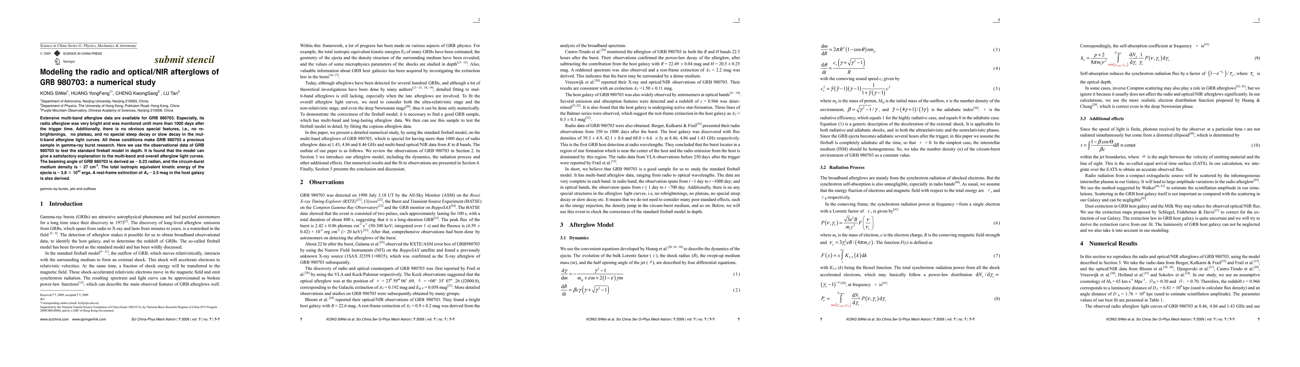 A study using GRB 980703 data confirms the standard fireball model for gamma-ray bursts, revealing a beaming angle of ~0.23 radian and a circum-burst medium density of ~27 cm^-3.