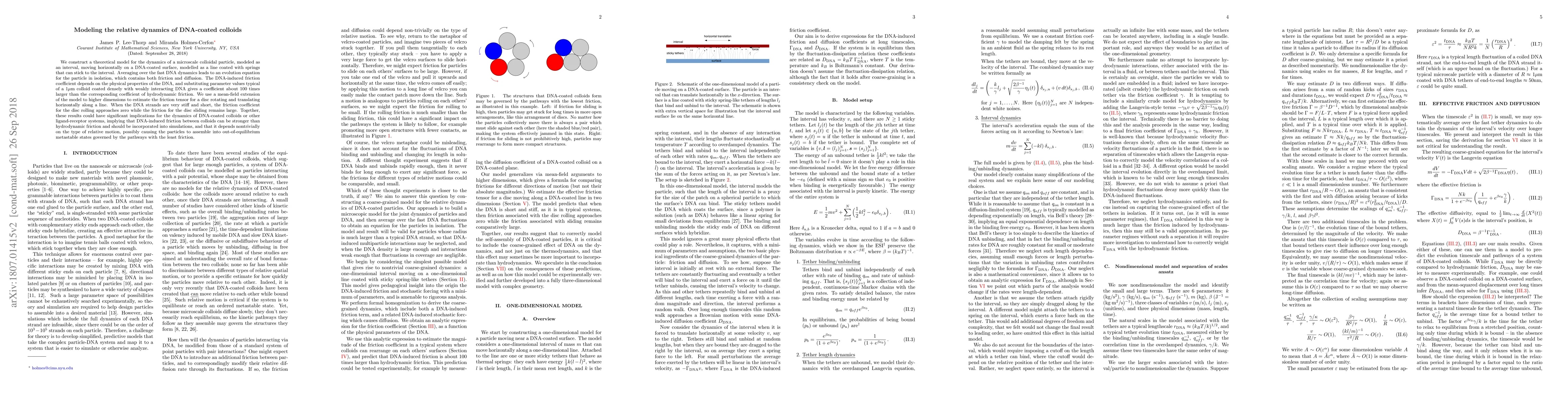 We construct a theoretical model for the dynamics of a microscale colloidal particle, modeled as an interval, moving horizontally on a DNA-coated surface, modelled as a line coated with springs that can stick to the interval. Averaging over the fast DNA dynamics leads to an evolution equation for the particle in isolation, which contains both friction and diffusion. The DNA-induced friction coefficient depends on the physical properties of the DNA, and substituting parameter values typical of a 1$\mu$m colloid coated densely with weakly interacting DNA gives a coefficient about 100 times larger than the corresponding coefficient of hydrodynamic friction. We use a mean-field extension of the model to higher dimensions to estimate the friction tensor for a disc rotating and translating horizontally along a line. When the DNA strands are very stiff and short, the friction coefficient for the disc rolling approaches zero while the friction for the disc sliding remains large. Together, these results could have significant implications for the dynamics of DNA-coated colloids or other ligand-receptor systems, implying that DNA-induced friction between colloids can be stronger than hydrodynamic friction and should be incorporated into simulations, and that it depends nontrivially on the type of relative motion, possibly causing the particles to assemble into out-of-equilibrium metastable states governed by the pathways with the least friction.