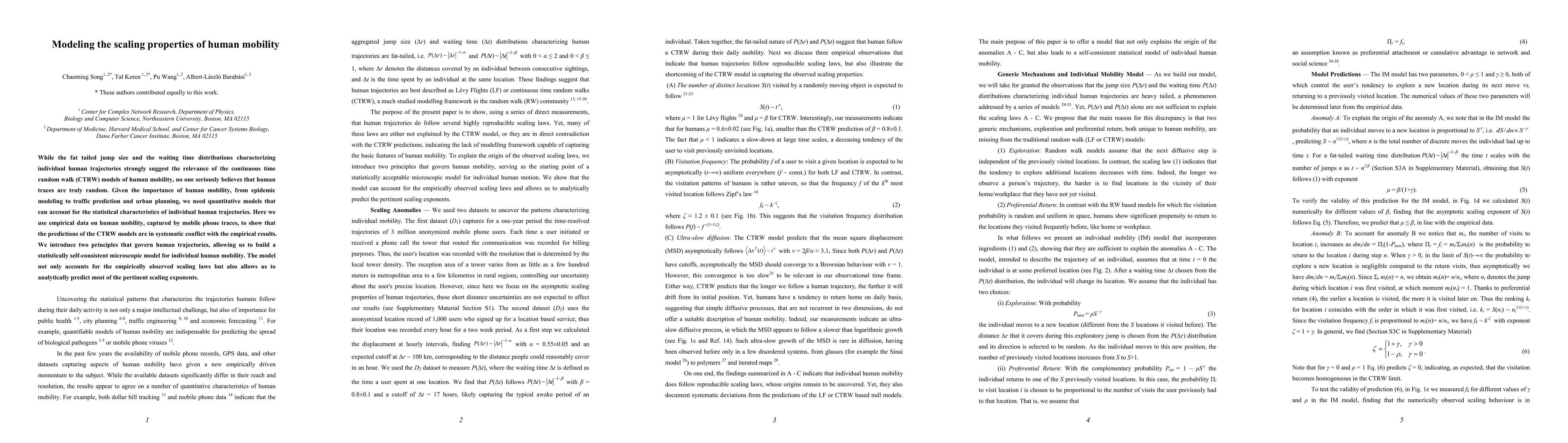 This paper critiques continuous time random walk models for human mobility, finding they conflict with empirical data. The authors propose two new principles to develop a self-consistent microscopic model that accurately predicts scaling laws and exponents observed in human mobility data.