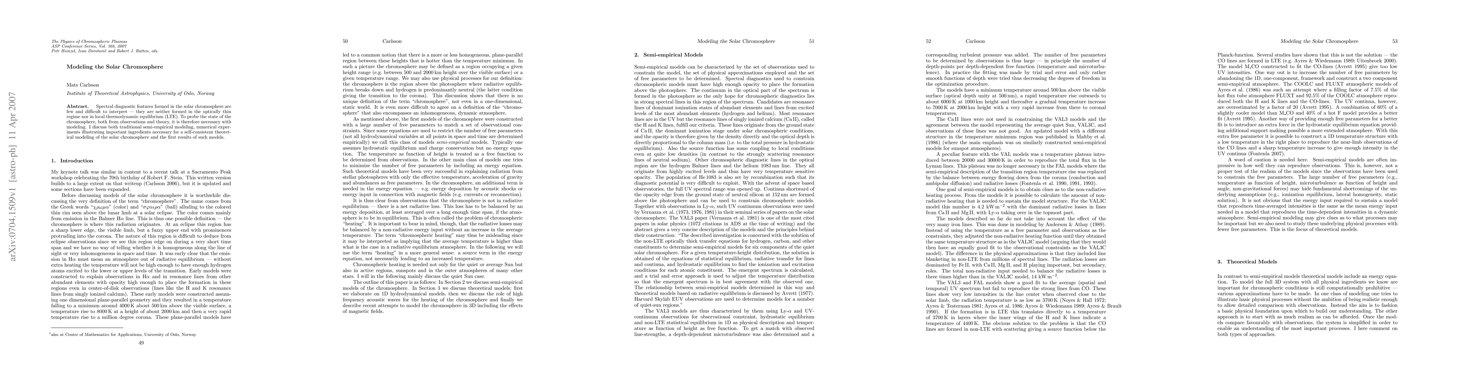 This paper explores the complexities of modeling the solar chromosphere, highlighting the challenges in interpreting spectral features due to their non-LTE nature and optically thick conditions. It discusses traditional semi-empirical models and presents initial results from new self-consistent theoretical models.