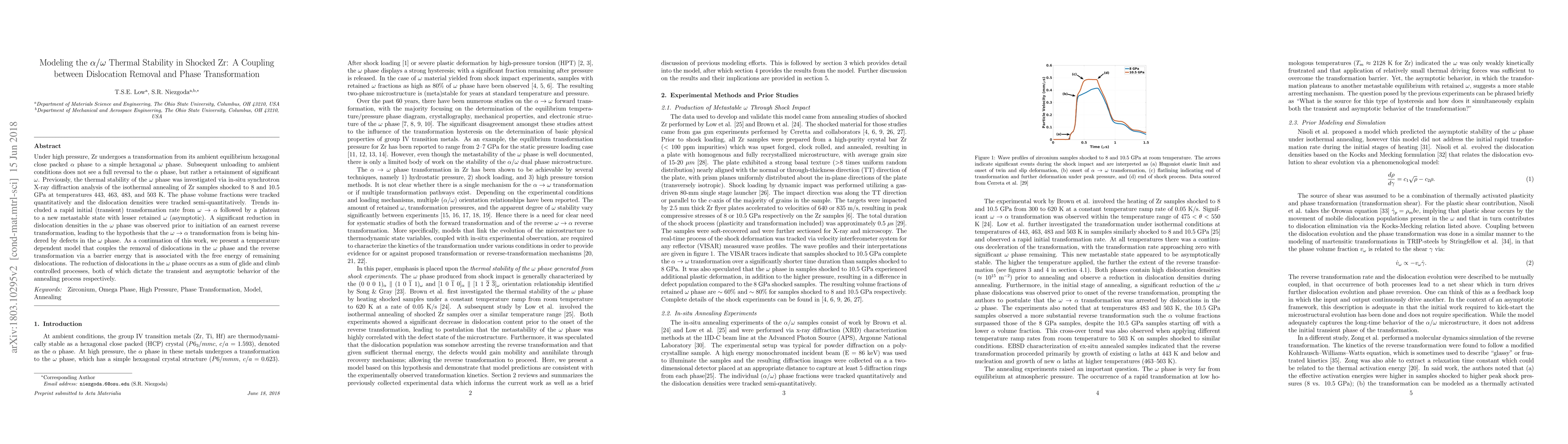 Researchers studied how Zr metal transforms from a high-pressure phase to its usual state after being shocked, and found that defects in the new phase hinder its transformation back to normal. A model was developed to explain this process, suggesting that removing dislocations helps trigger the transformation.
