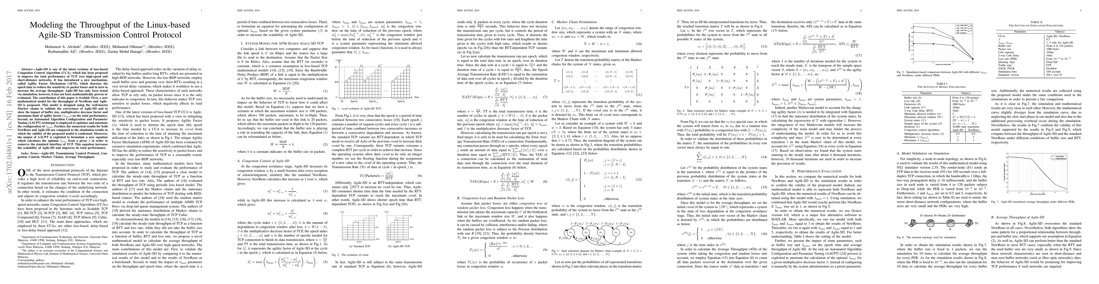 Agile-SD is one of the latest versions of loss-based congestion control algorithm (CCA), which has been proposed to improve the total performance of transmission control protocol (TCP) over high-speed and short-distance networks. It has introduced a new mechanism, called agility factor mechanism, which shortens the epoch time to reduce the sensitivity to packet losses and in turn to increase the average throughput. Agile-SD has only been tested via simulation; however, it has not been mathematically proven or evaluated. The contribution of this paper is twofold. First, a new mathematical model for the throughput of NewReno and Agile-SD is proposed. This model is designed using the well-known Markov chains to validate the correctness of Agile-SD and to show the impact of buffer size, multiplicative decrease factor, and maximum limit of agility factor ({\lambda}max ) on the total performance. Second, an automated algorithm configuration and parameter tuning (AACPT) technique is employed to optimize and automate the configuration of {\lambda}max . Furthermore, the numerical results for both NewReno and Agile-SD are compared with the simulation results, in which the validity of the proposed model is confirmed. Moreover, the output of the AACPT is exploited to formulate a new equation, which calculates the optimal {\lambda}max from a given \b{eta} in order to conserve the standard interface of the TCP. This equation increases the scalability of Agile-SD and improves its total performance.