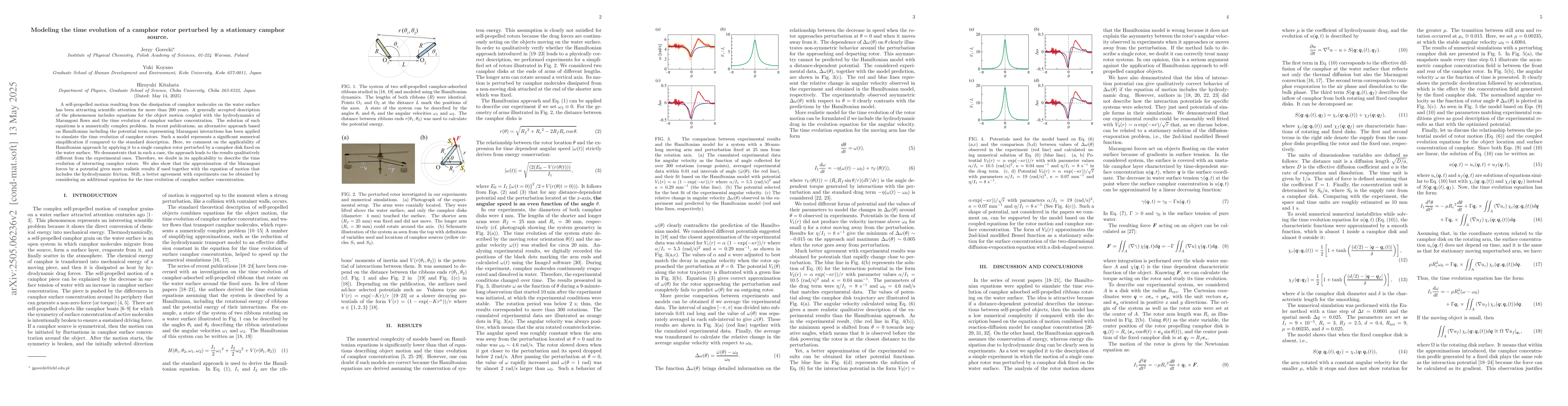 The study applies a Hamiltonian approach to model the time evolution of a camphor rotor perturbed by a stationary camphor source, comparing it to experimental results.
