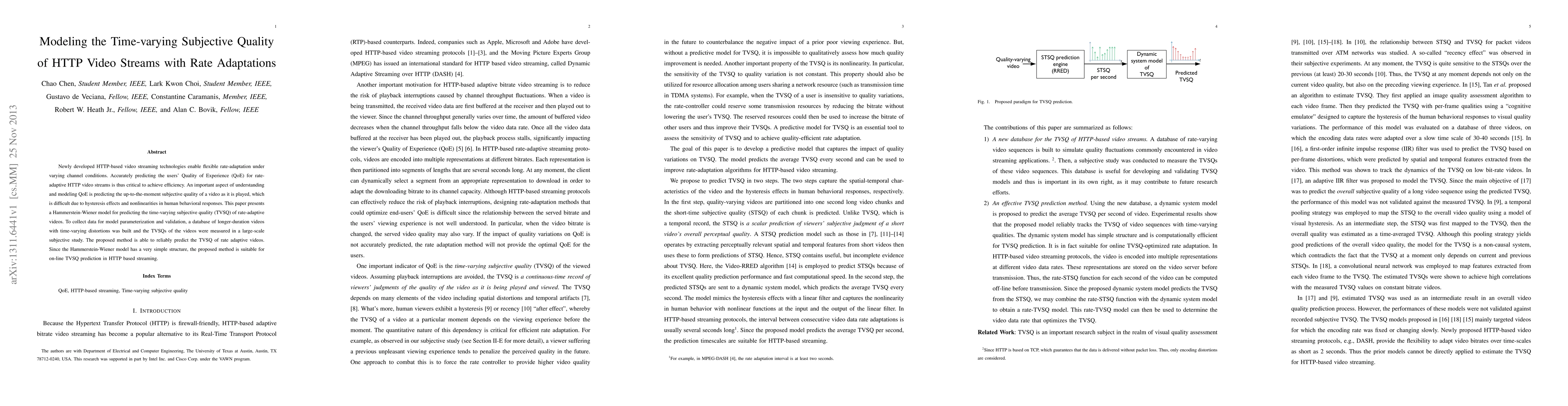 This paper introduces a Hammerstein-Wiener model to predict the time-varying subjective quality of rate-adaptive HTTP video streams, addressing the complexities of hysteresis and nonlinear human responses. The model was validated using a large-scale subjective study on a database of videos with varying distortions, demonstrating reliable predictions suitable for real-time implementation in streaming.