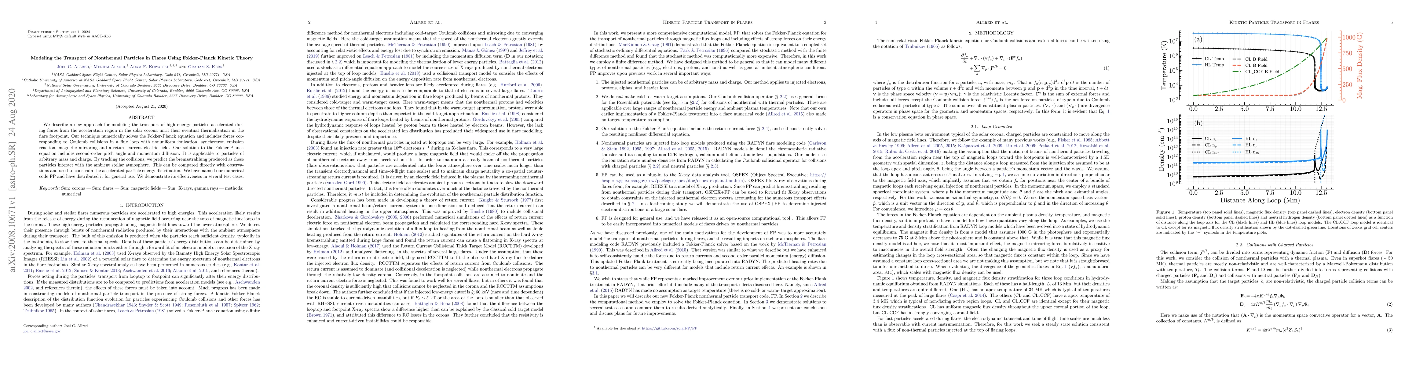 This work is novel because it combines numerical simulations with observational data to study kinetic particle transport, providing a unique perspective on solar flare physics.
