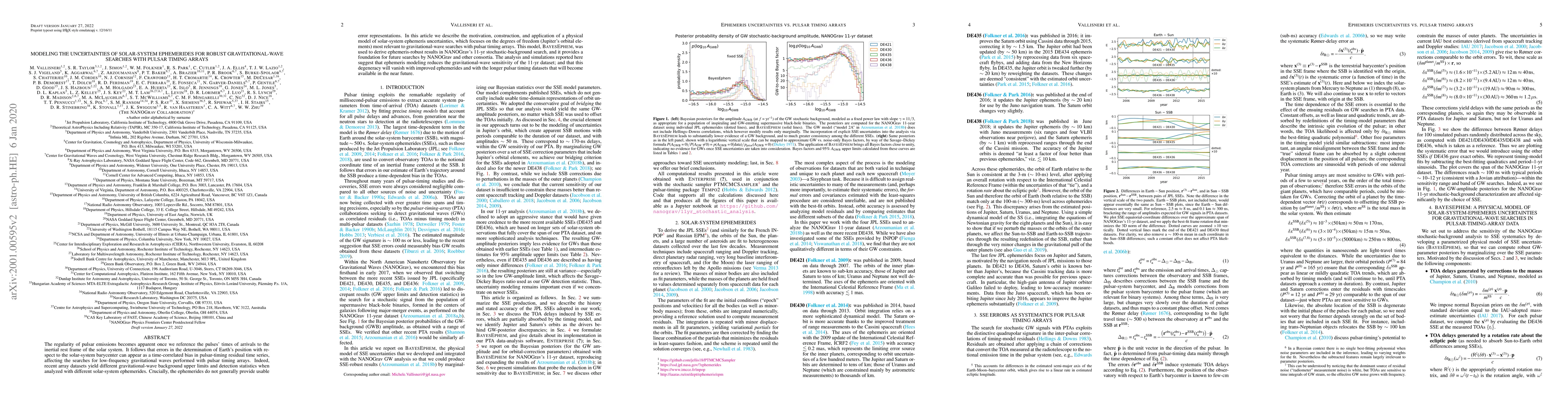 This paper develops a physical model, BayesEphem, to quantify uncertainties in solar-system ephemerides, which can introduce biases in pulsar timing arrays used for gravitational-wave searches. The model focuses on Jupiter's orbital elements, and it was applied to NANOGrav's 11-yr dataset to improve gravitational-wave detection robustness.