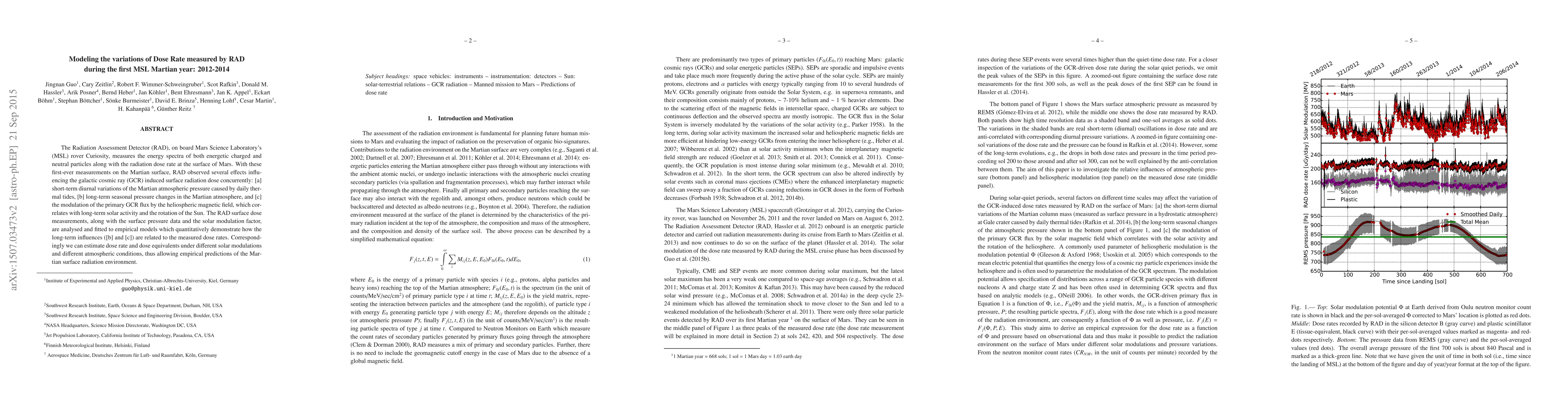 The Radiation Assessment Detector on NASA's Curiosity rover measured Mars' surface radiation dose rates during 2012-2014, revealing the effects of daily atmospheric pressure changes and long-term solar activity on radiation exposure.
