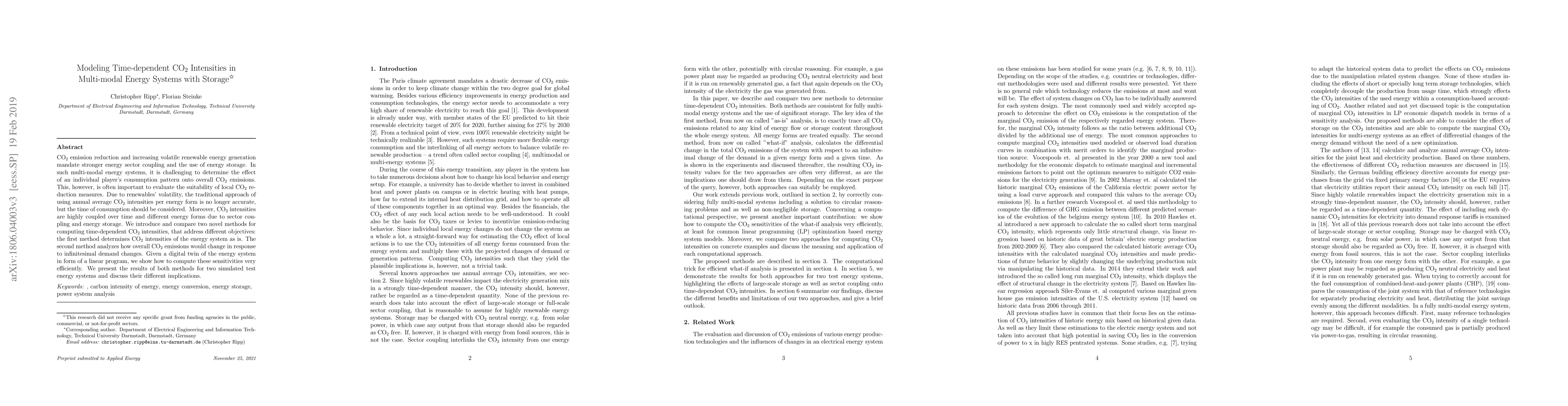 CO$_2$ emission reduction and increasing volatile renewable energy generation mandate stronger energy sector coupling and the use of energy storage. In such multi-modal energy systems, it is challenging to determine the effect of an individual player's consumption pattern onto overall CO$_2$ emissions. This, however, is often important to evaluate the suitability of local CO$_2$ reduction measures. Due to renewables' volatility, the traditional approach of using annual average CO$_2$ intensities per energy form is no longer accurate, but the time of consumption should be considered. Moreover, CO$_2$ intensities are highly coupled over time and different energy forms due to sector coupling and energy storage. We introduce and compare two novel methods for computing time-dependent CO$_2$ intensities, that address different objectives: the first method determines CO$_2$ intensities of the energy system as is. The second method analyzes how overall CO$_2$ emissions would change in response to infinitesimal demand changes. Given a digital twin of the energy system in form of a linear program, we show how to compute these sensitivities very efficiently. We present the results of both methods for two simulated test energy systems and discuss their different implications.