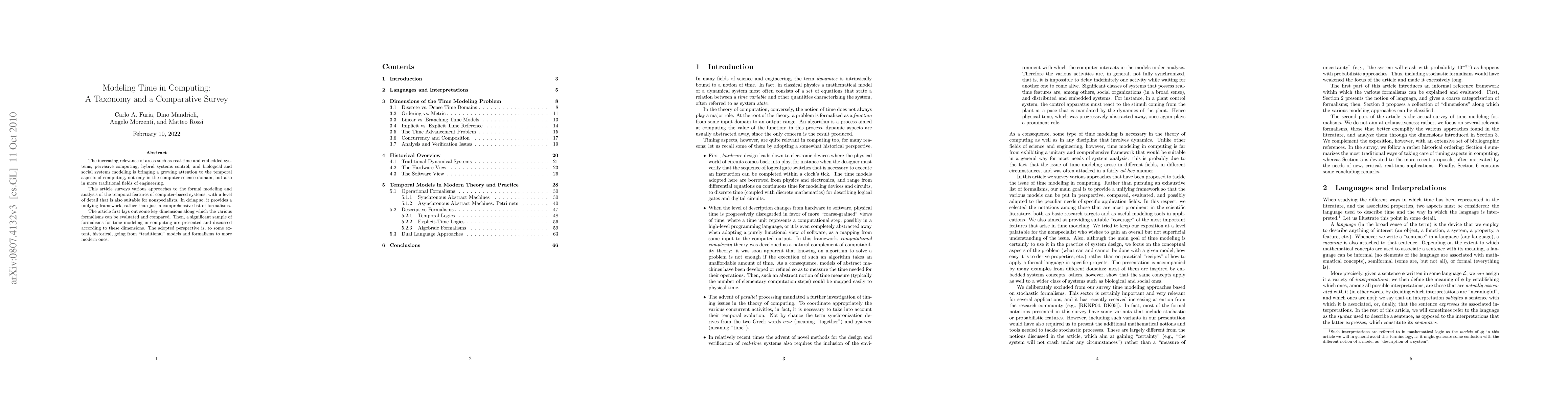 The increasing relevance of areas such as real-time and embedded systems, pervasive computing, hybrid systems control, and biological and social systems modeling is bringing a growing attention to the temporal aspects of computing, not only in the computer science domain, but also in more traditional fields of engineering. This article surveys various approaches to the formal modeling and analysis of the temporal features of computer-based systems, with a level of detail that is suitable also for non-specialists. In doing so, it provides a unifying framework, rather than just a comprehensive list of formalisms. The paper first lays out some key dimensions along which the various formalisms can be evaluated and compared. Then, a significant sample of formalisms for time modeling in computing are presented and discussed according to these dimensions. The adopted perspective is, to some extent, historical, going from "traditional" models and formalisms to more modern ones.