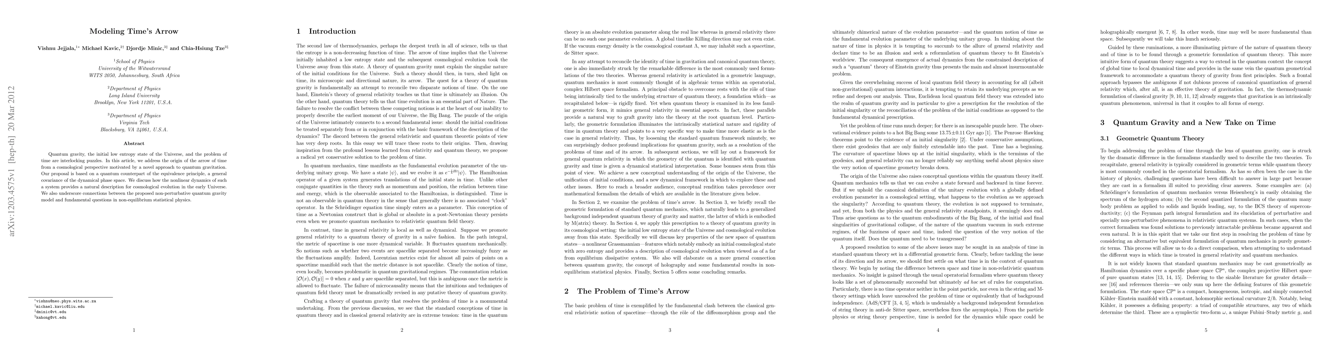 The research proposes a novel theory of quantum gravity that models the arrow of time from a cosmological perspective, based on a quantum counterpart of the equivalence principle and a general covariance of the dynamical phase space.