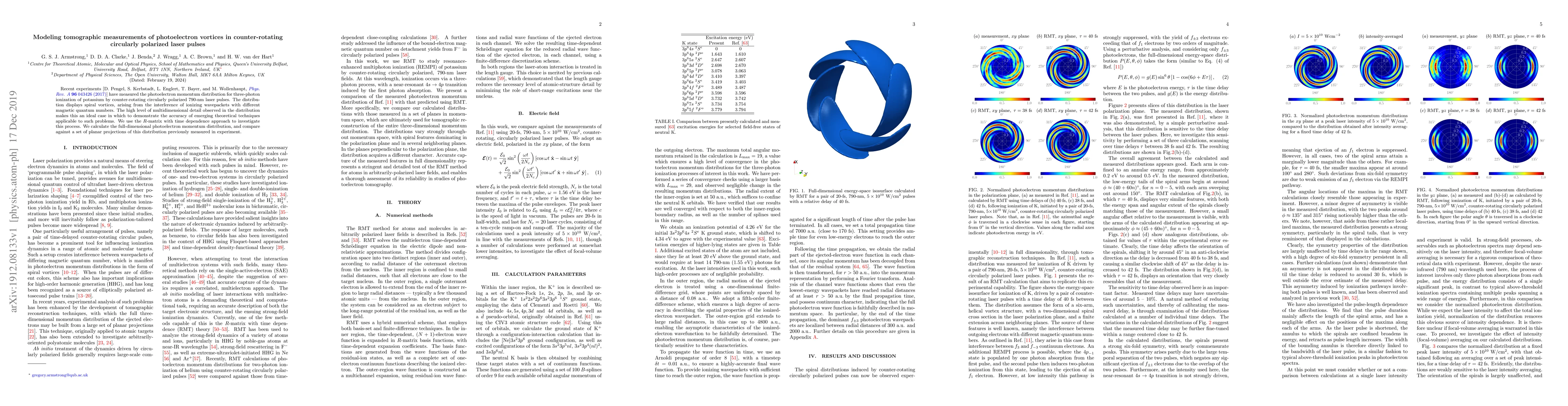 This paper models the photoelectron momentum distribution from three-photon ionization of potassium using counter-rotating circularly polarized laser pulses, revealing spiral vortices due to wavepacket interference. The \(R\)-matrix with time dependence approach is used to predict the full-dimensional distribution and is compared to experimental planar projections.