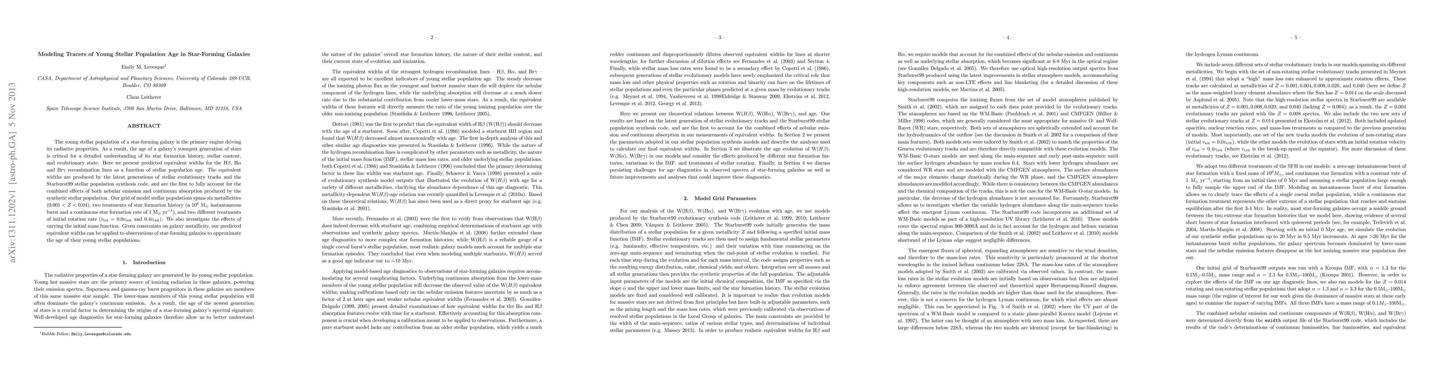 The young stellar population of a star-forming galaxy is the primary engine driving its radiative properties. As a result, the age of a galaxy's youngest generation of stars is critical for a detailed understanding of its star formation history, stellar content, and evolutionary state. Here we present predicted equivalent widths for the H-beta, H-alpha, and Br-gamma recombination lines as a function of stellar population age. The equivalent widths are produced by the latest generations of stellar evolutionary tracks and the Starburst99 stellar population synthesis code, and are the first to fully account for the combined effects of both nebular emission and continuum absorption produced by the synthetic stellar population. Our grid of model stellar populations spans six metallicities (0.001 < Z < 0.04), two treatments of star formation history (a 10^6 Mo instantaneous burst and a continuous star formation rate of 1 Mo/yr), and two different treatments of initial rotation rate (v_rot = 0.0v_crit and 0.4v_crit). We also investigate the effects of varying the initial mass function. Given constraints on galaxy metallicity, our predicted equivalent widths can be applied to observations of star-forming galaxies to approximate the age of their young stellar populations.