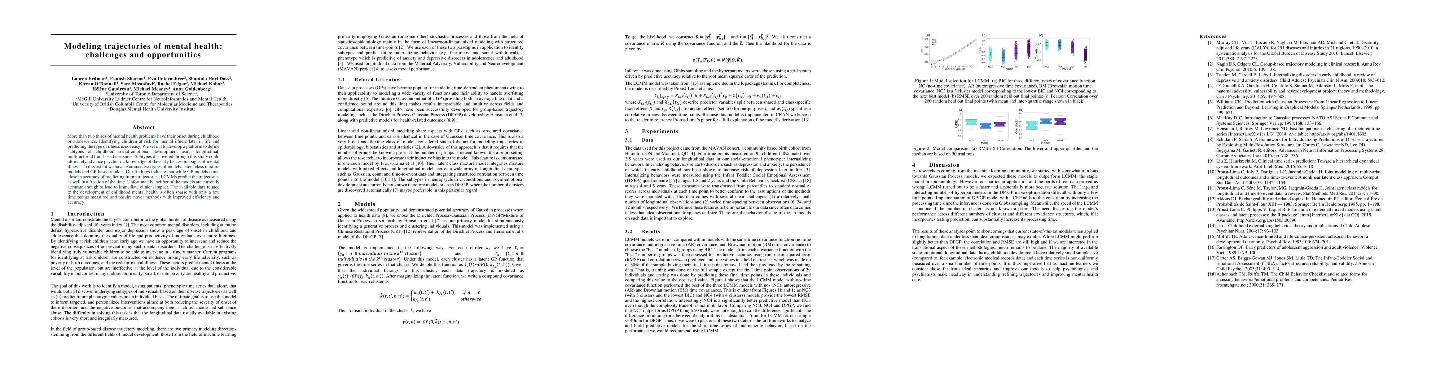 This paper develops models to identify subtypes of childhood social-emotional development, aiming to predict future mental health trajectories. While GP-based models show promise in accuracy, latent class mixture models are more efficient, yet neither is currently accurate enough for clinical use.