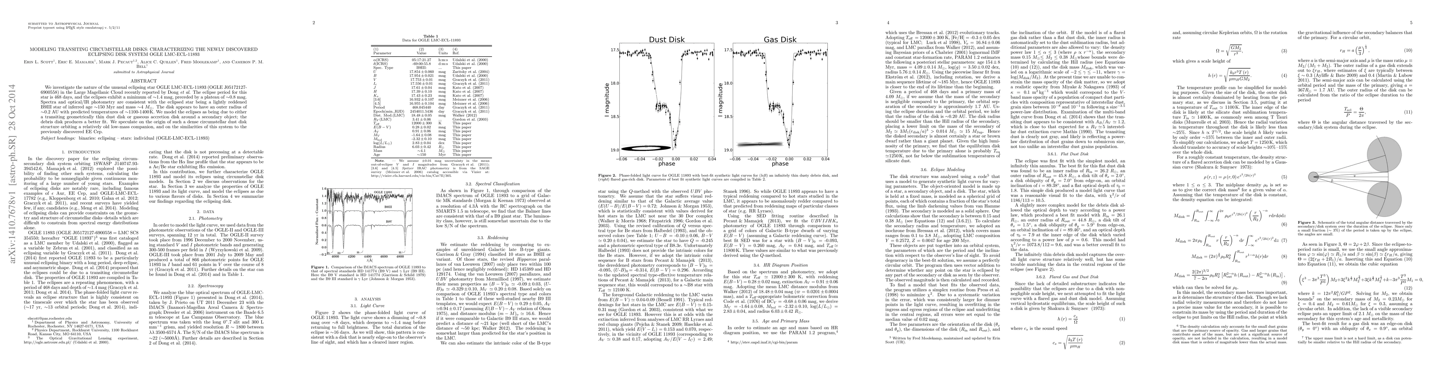 This paper models the unusual eclipsing star OGLE LMC-ECL-11893, finding it likely involves a transiting circumstellar dust disk around a B9III star, with the disk's origin and similarities to other systems like EE Cep discussed.