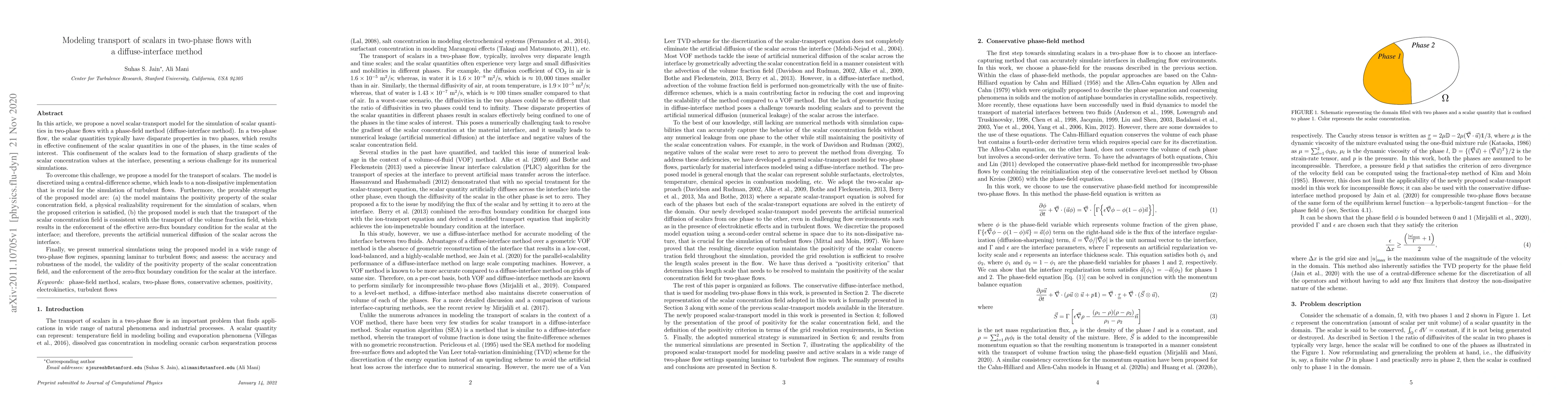 This paper proposes a novel diffuse-interface method for simulating scalar transport in two-phase flows, ensuring positivity and zero-flux boundary conditions without artificial numerical diffusion, and demonstrates its accuracy and robustness through various flow regimes.