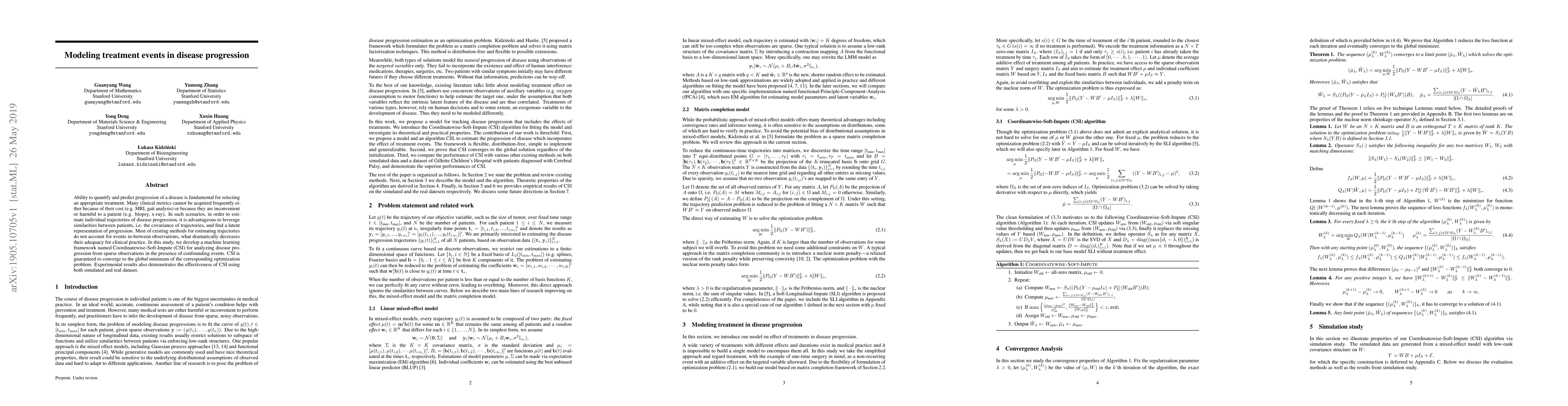 A new machine learning framework called Coordinatewise-Soft-Impute (CSI) is developed to analyze disease progression from sparse observations with confounding events, improving the accuracy of treatment planning.