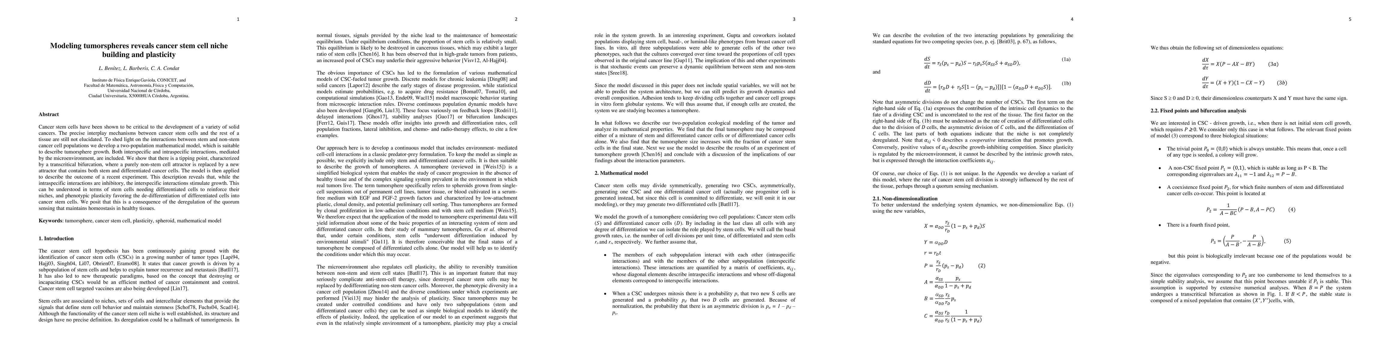 This paper develops a mathematical model to explore interactions between cancer stem cells and differentiated cancer cells within tumorspheres, revealing a tipping point where stem cells can reinforce their niches through interspecific interactions, highlighting the role of phenotypic plasticity in cancer progression.