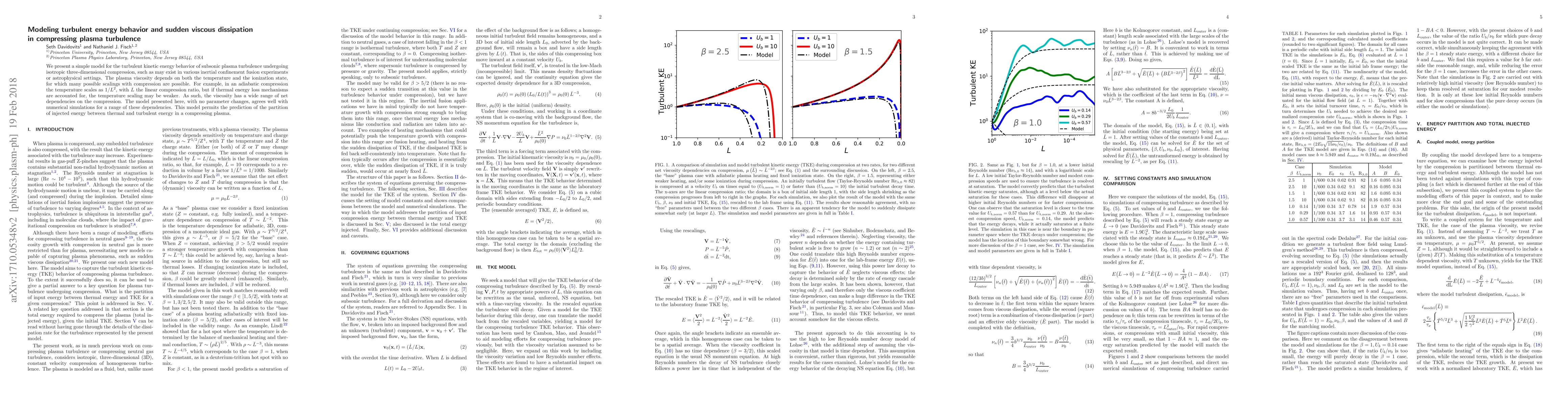 We present a simple model for the turbulent kinetic energy behavior of subsonic plasma turbulence undergoing isotropic three-dimensional compression, such as may exist in various inertial confinement fusion experiments or astrophysical settings. The plasma viscosity depends on both the temperature and the ionization state, for which many possible scalings with compression are possible. For example, in an adiabatic compression the temperature scales as $1/L^2$, with $L$ the linear compression ratio, but if thermal energy loss mechanisms are accounted for, the temperature scaling may be weaker. As such, the viscosity has a wide range of net dependencies on the compression. The model presented here, with no parameter changes, agrees well with numerical simulations for a range of these dependencies. This model permits the prediction of the partition of injected energy between thermal and turbulent energy in a compressing plasma.