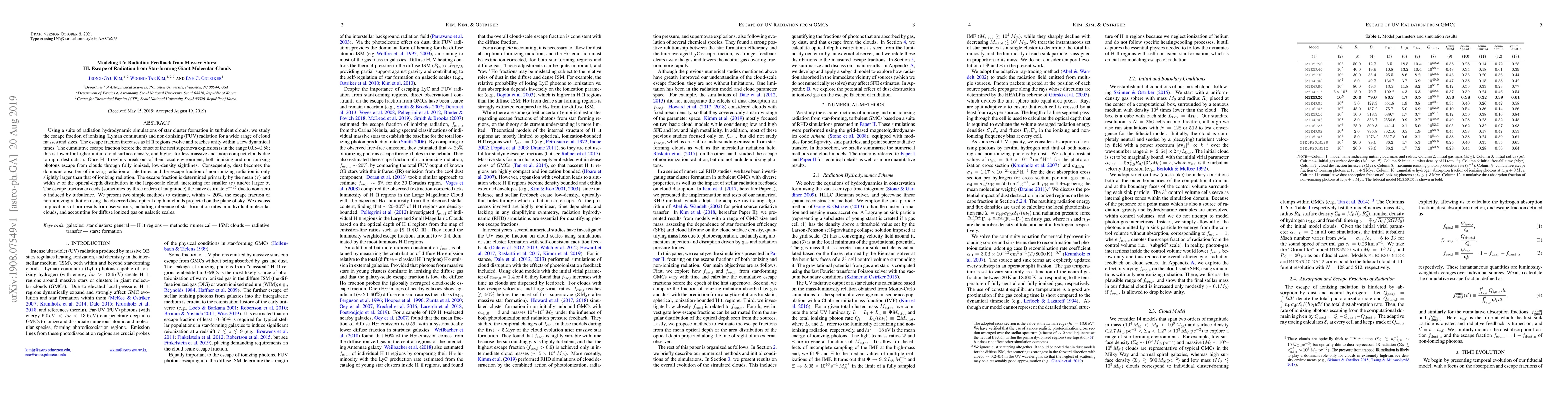 This paper investigates the escape fraction of ionizing and non-ionizing radiation from star-forming giant molecular clouds using radiation hydrodynamic simulations. The escape fraction increases with the evolution of H II regions and is influenced by cloud mass, size, and initial density, with turbulence playing a significant role in the escape process.