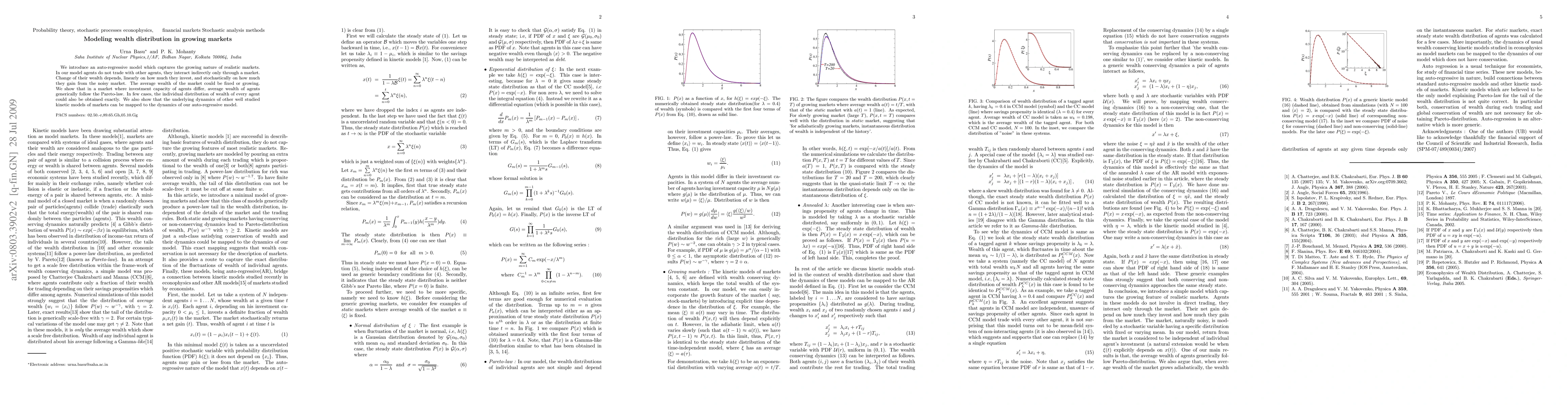 This paper proposes an auto-regressive model to simulate wealth distribution in evolving markets, where agents interact indirectly through a market. It demonstrates that when agents have varying investment capacities, the average wealth typically follows a Pareto distribution, with some exact individual wealth distributions possible.