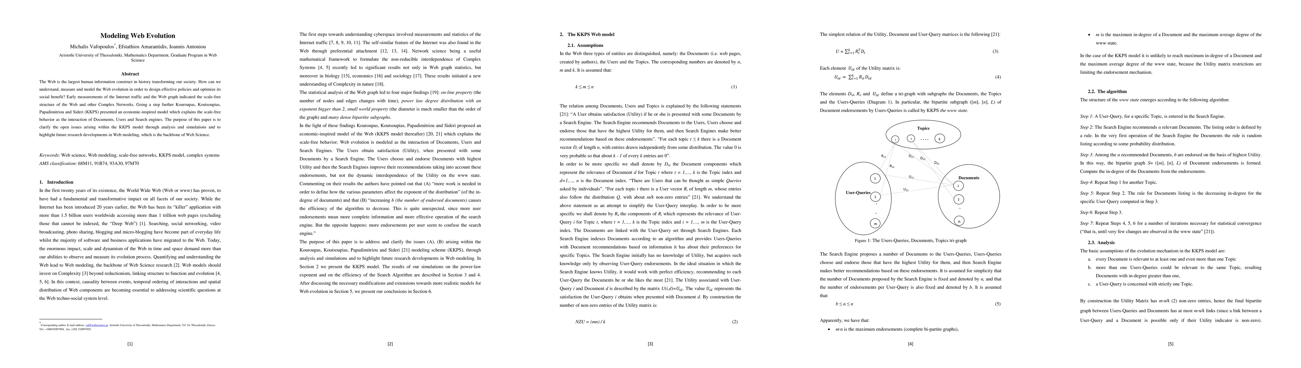 The Web is the largest human information construct in history transforming our society. How can we understand, measure and model the Web evolution in order to design effective policies and optimize its social benefit? Early measurements of the Internet traffic and the Web graph indicated the scale-free structure of the Web and other Complex Networks. Going a step further Kouroupas, Koutsoupias, Papadimitriou and Sideri (KKPS) presented an economic-inspired model which explains the scale-free behavior as the interaction of Documents, Users and Search engines. The purpose of this paper is to clarify the open issues arising within the KKPS model through analysis and simulations and to highlight future research developments in Web modeling, which is the backbone of Web Science.