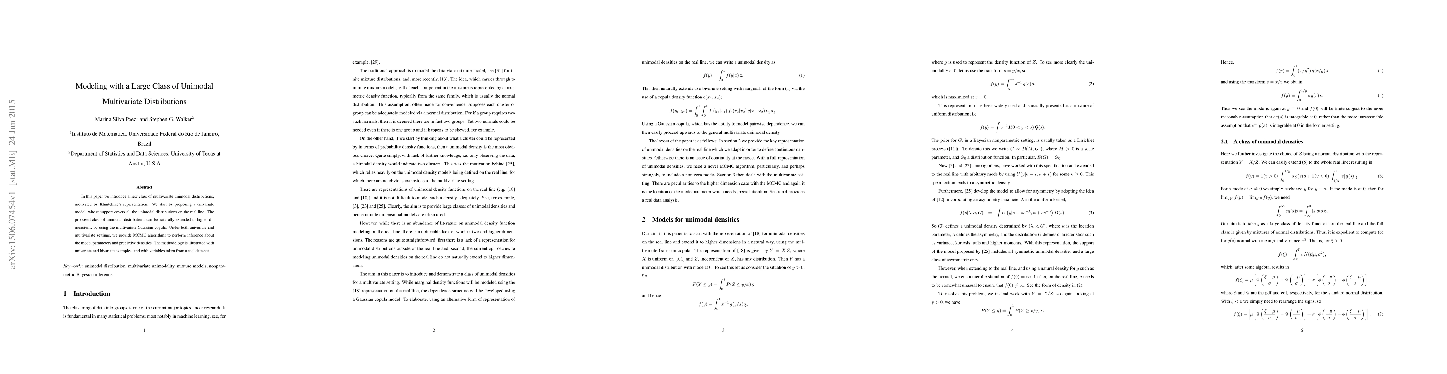 In this paper we introduce a new class of multivariate unimodal distributions, motivated by Khintchine's representation. We start by proposing a univariate model, whose support covers all the unimodal distributions on the real line. The proposed class of unimodal distributions can be naturally extended to higher dimensions, by using the multivariate Gaussian copula. Under both univariate and multivariate settings, we provide MCMC algorithms to perform inference about the model parameters and predictive densities. The methodology is illustrated with univariate and bivariate examples, and with variables taken from a real data-set.