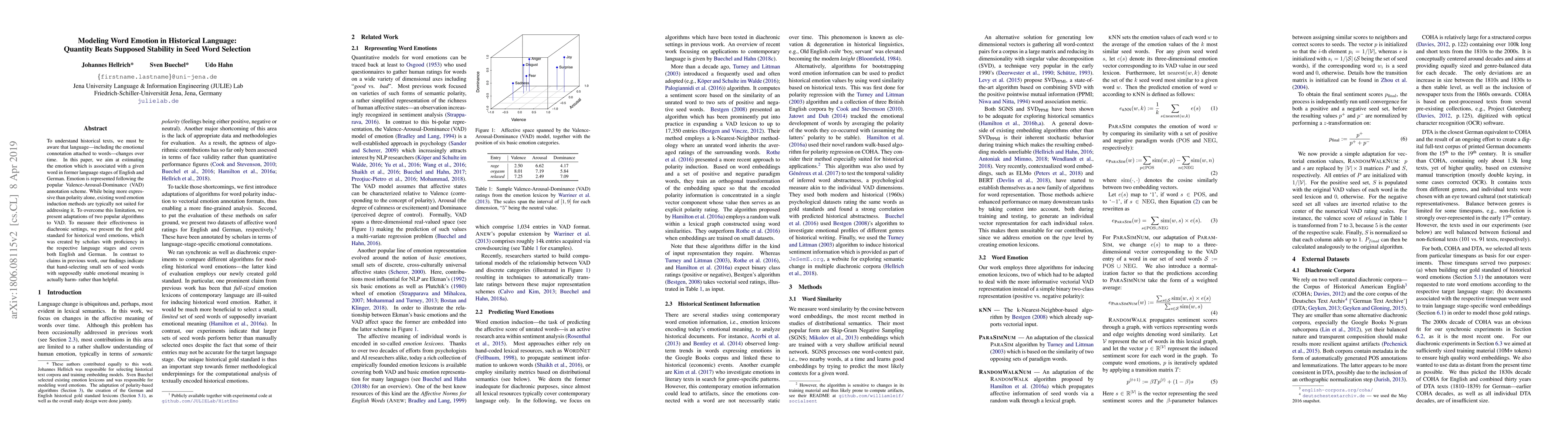 Researchers found that selecting seed words with supposedly stable emotional meaning in historical language can actually lead to inaccurate results, suggesting that quantity may be more important than stability when modeling word emotion over time.