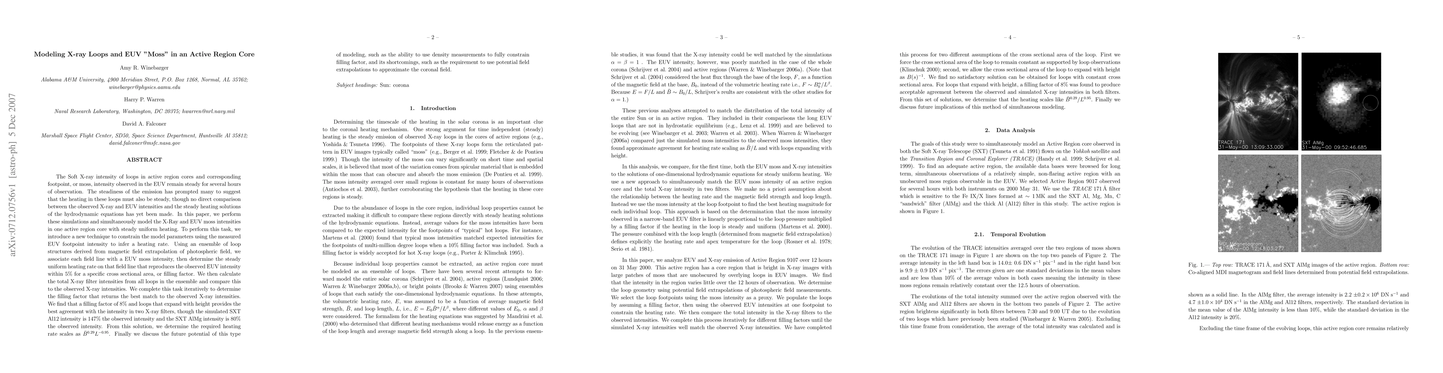 The Soft X-ray intensity of loops in active region cores and corresponding footpoint, or moss, intensity observed in the EUV remain steady for several hours of observation. The steadiness of the emission has prompted many to suggest that the heating in these loops must also be steady, though no direct comparison between the observed X-ray and EUV intensities and the steady heating solutions of the hydrodynamic equations has yet been made. In this paper, we perform these simulations and simultaneously model the X-Ray and EUV moss intensities in one active regioncore with steady uniform heating. To perform this task, we introduce a new technique to constrain the model parameters using the measured EUV footpoint intensity to infer a heating rate. We find that a filling factor of 8% and loops that expand with height provides the best agreement with the intensity in two X-ray filters, though the simulated SXT Al12 intensity is 147% the observed intensity and the SXT AlMg intensity is 80% the observed intensity. From this solution, we determine the required heating rate scales as ${\bar{B}}^{0.29} L^{-0.95}$. Finally we discuss the future potential of this type of modeling, such as the ability to use density measurements to fully constrain filling factor, and its shortcomings, such as the requirement to use potential field extrapolations to approximate the coronal field.