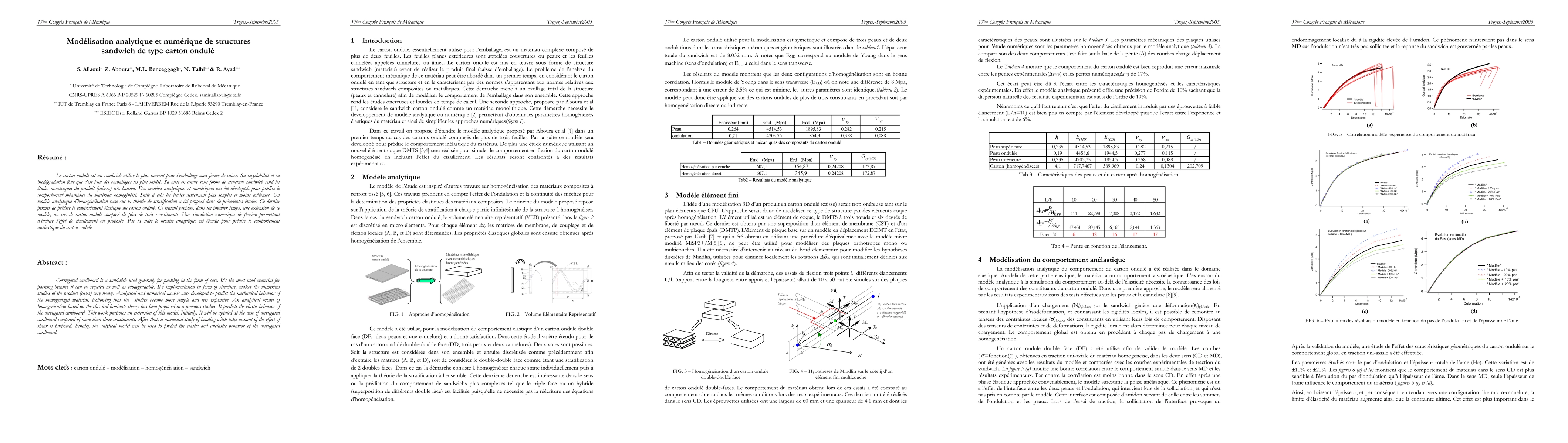 Corrugated cardboard is a sandwich used generally for packing in the form of case. It's the most used material for packing because it can be recycled as well as biodegradable. It's implementation in form of structure, makes the numerical studies of the product (cases) very heavy. Analytical and numerical models were developed to predict the mechanical behavior of the homogenized material. Following that the studies become more simple and less expensive. An analytical model of homogenisation based on the classical laminate theory has been proposed in a previous studies. It predicts the elastic behavior of the corrugated cardboard. This work purposes an extension of this model. Initially, It will be applied at the case of corrugated cardboard composed of more than three constituents. After that, a numerical study of bending witch take account of the effect of shear is proposed. Finally, the anlytical model will be used to predict the elastic and anelastic behavior of the corrugated cardboard.