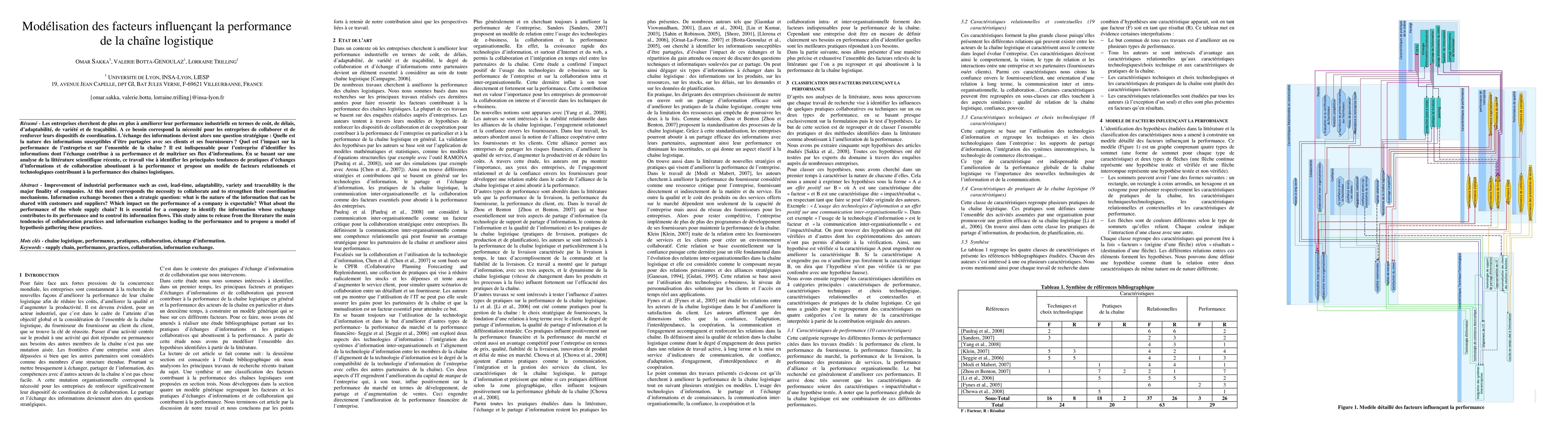 Improvement of industrial performance such as cost, lead-time, adaptability, variety and traceability is the major finality of companies. At this need corresponds the necessity to collaborate and to strengthen their coordination mechanisms. Information exchange becomes then a strategic question: what is the nature of the information that can be shared with customers and suppliers? Which impact on the performance of a company is expectable? What about the performance of the whole supply chain? It is essential for a company to identify the information whose exchange contributes to its performance and to control its information flows. This study aims to release from the literature the main tendencies of collaboration practices and information exchanges leading to the performance and to propose a model of hypothesis gathering these practices.