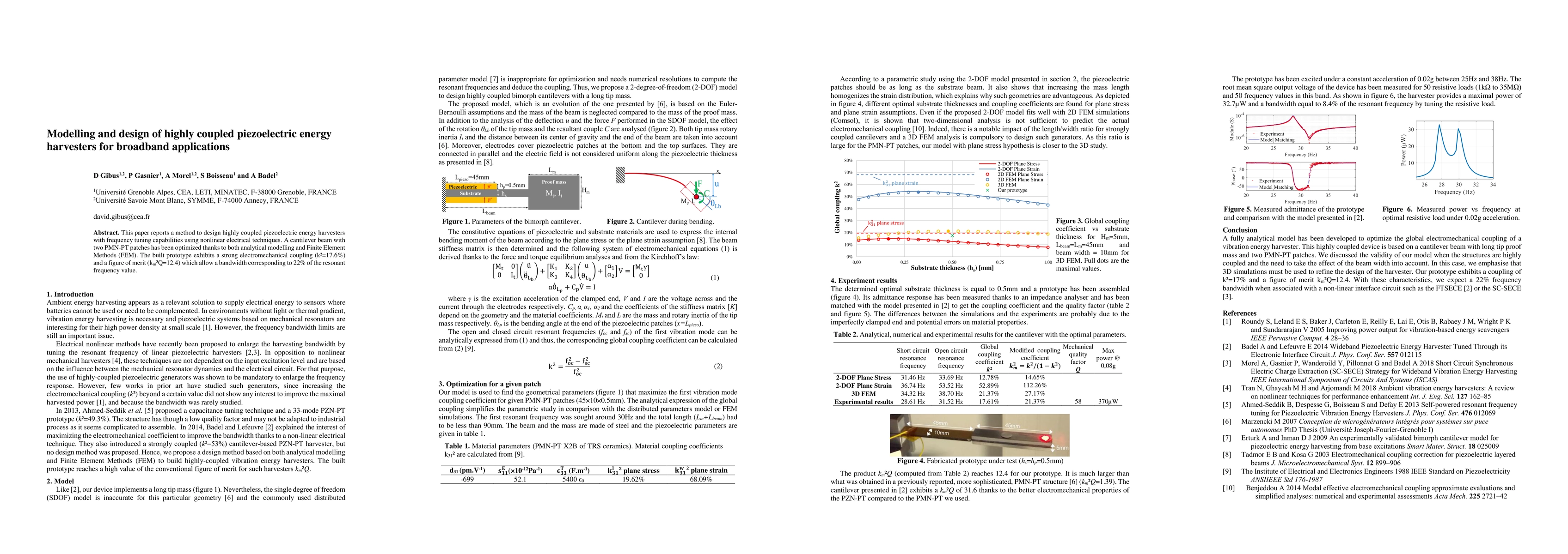 This paper presents a method for designing highly coupled piezoelectric energy harvesters with tunable frequency using nonlinear electrical techniques, optimizing a cantilever beam with two PMN-PT patches through analytical modelling and FEM. The prototype demonstrates strong electromechanical coupling and a wide bandwidth of 22% of the resonant frequency.