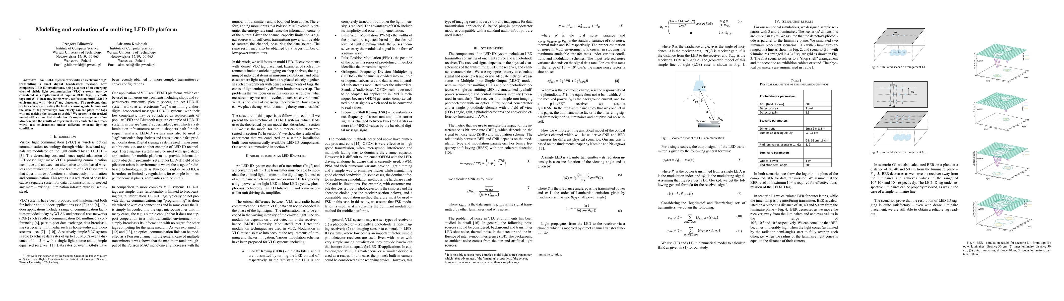 This paper models and evaluates a multi-tag LED-ID platform, focusing on estimating cross-tag interference and tag proximity in dense LED-ID systems. It presents a theoretical model and numerical simulations alongside real-world experimental results under varying lighting conditions.