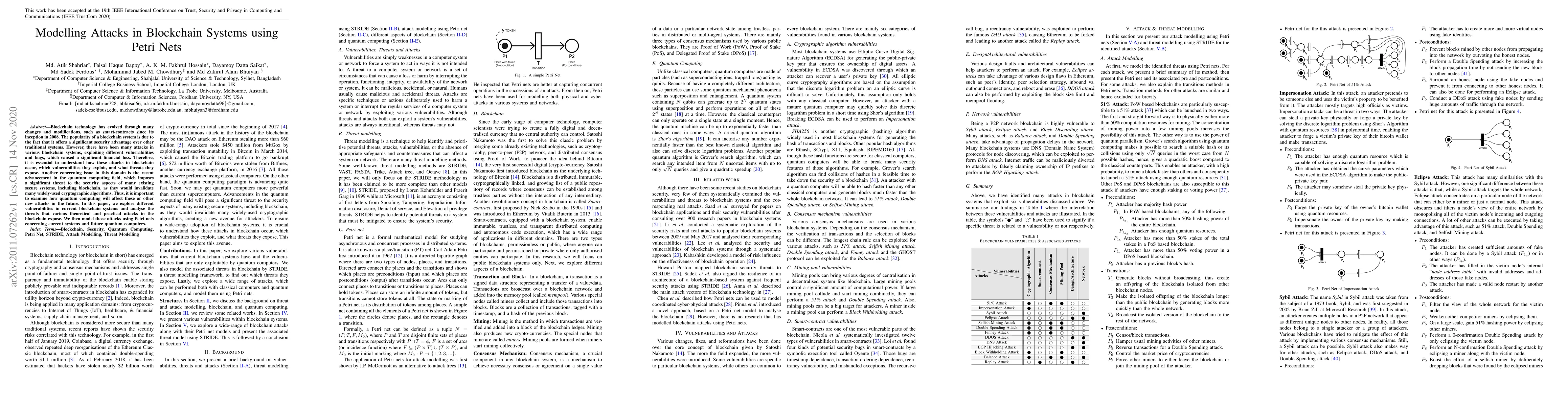 This paper investigates vulnerabilities in blockchain systems, analyzing both current and potential future attacks, including those enabled by quantum computing. It employs Petri nets to model these attacks, providing insights into the security threats and how they might evolve.
