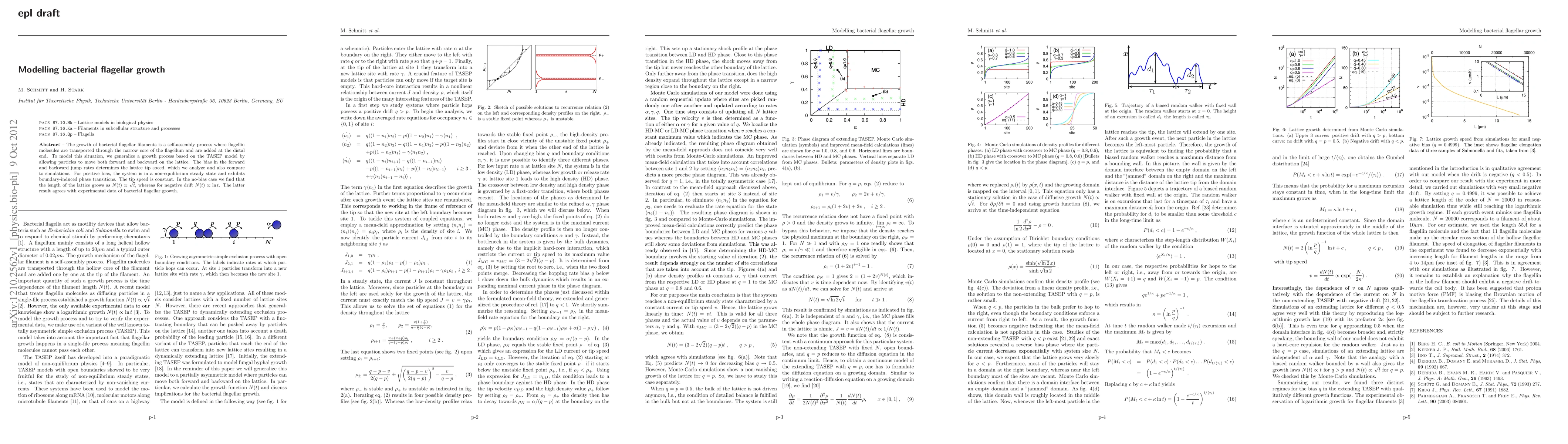This paper models bacterial flagellar growth using a generalized TASEP model, allowing particles to move both forward and backward. It finds that positive bias leads to a constant tip speed in a non-equilibrium steady state, while negative bias results in a growth rate proportional to $\ln{t}$, matching experimental data.